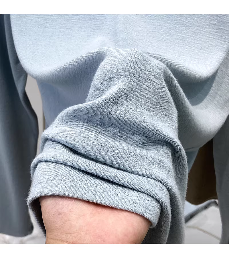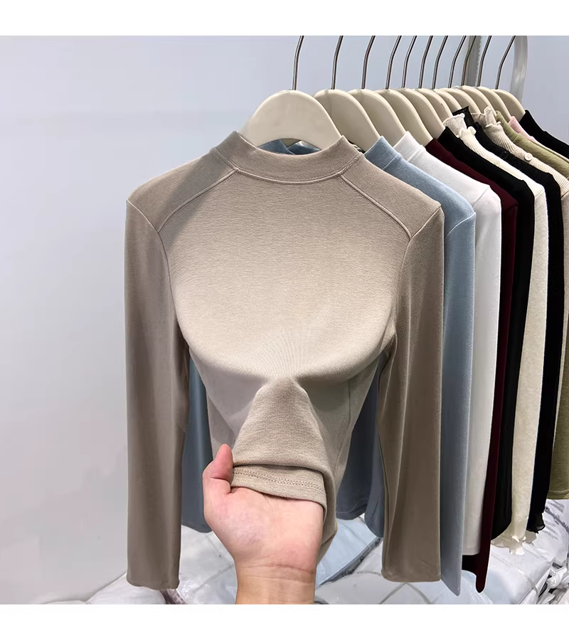 Áo thun dài tay cổ cao nửa cổ màu xanh La Chapelle dành cho nữ 2025 áo trong ôm sát mùa thu đông mới