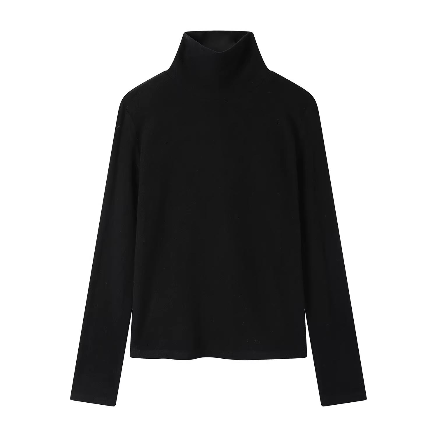 Áo thun dài tay cổ cao, ôm dáng, chất liệu nhung Đức màu trắng, đa năng, thích hợp mặc trong mùa thu đông dành cho nữ.
