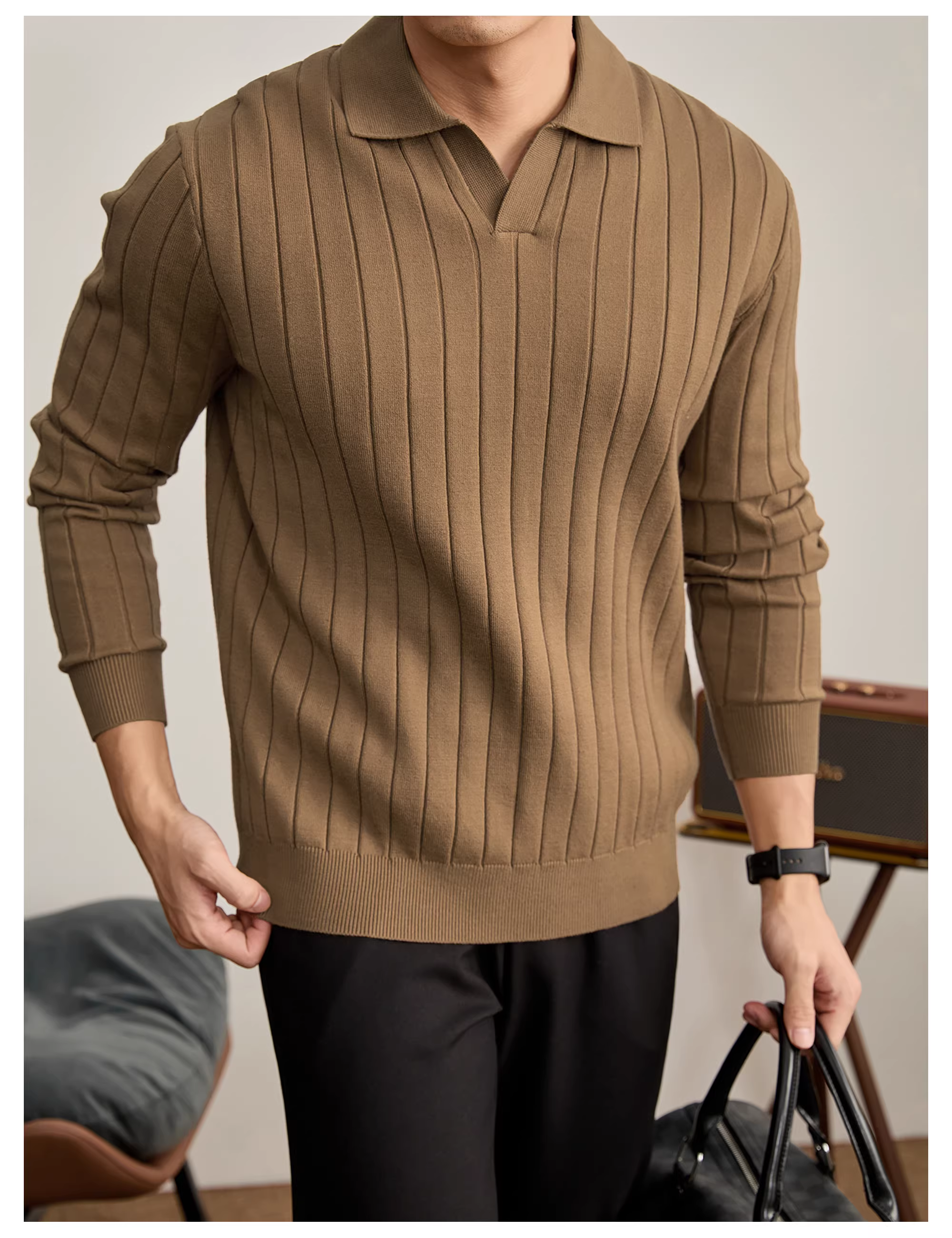 - Áo thun dài tay cổ hải âu chất lượng cao LUUD dành cho nam, áo dệt kim POLO họa tiết sọc dọc mùa thu đông