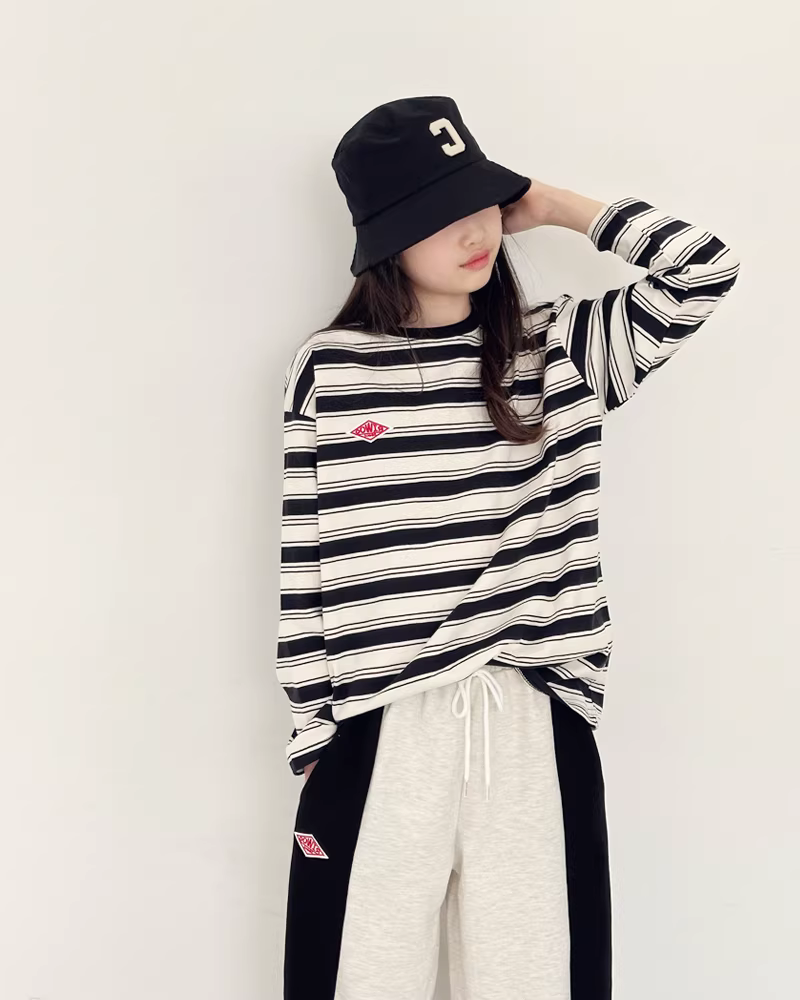 - Áo thun dài tay cổ tròn sọc ngang cho bé gái, kiểu mới xuân thu 2025, áo lót mùa thu cho trẻ em, chất liệu thoải mái