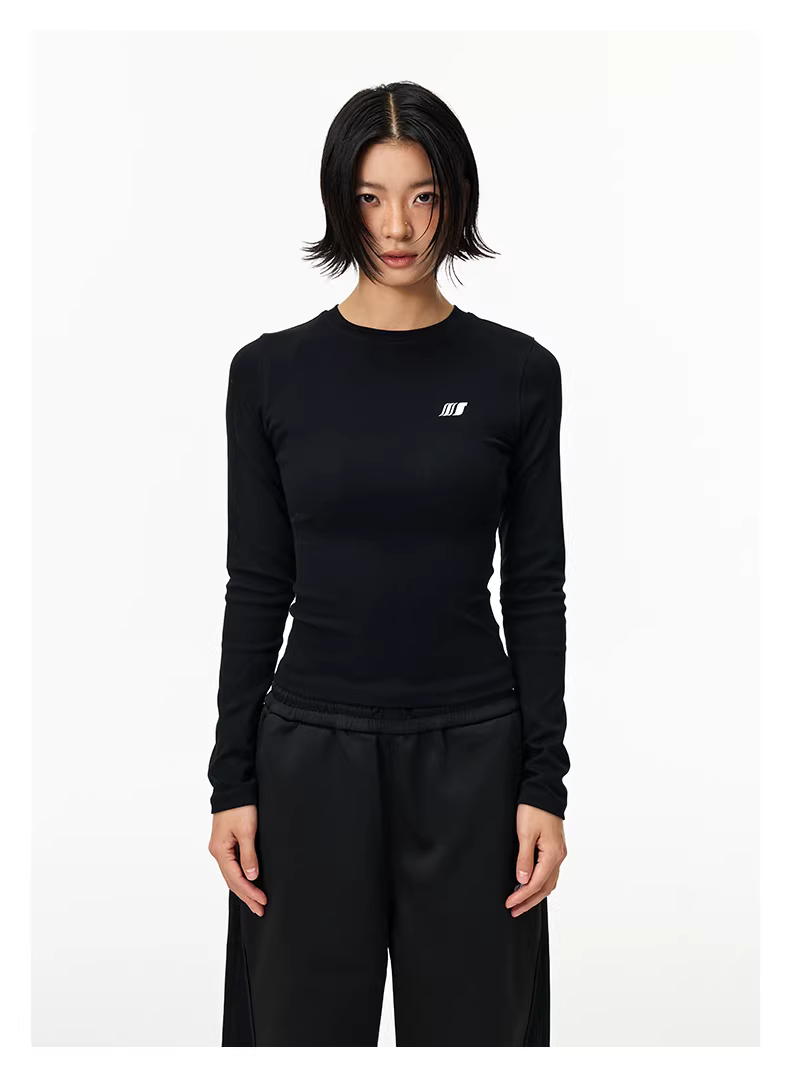 Áo thun dài tay dáng ôm kiểu Mỹ của Jungle Tiger dành cho nữ, áo sơ mi cổ tròn đa năng màu trơn mùa xuân thu