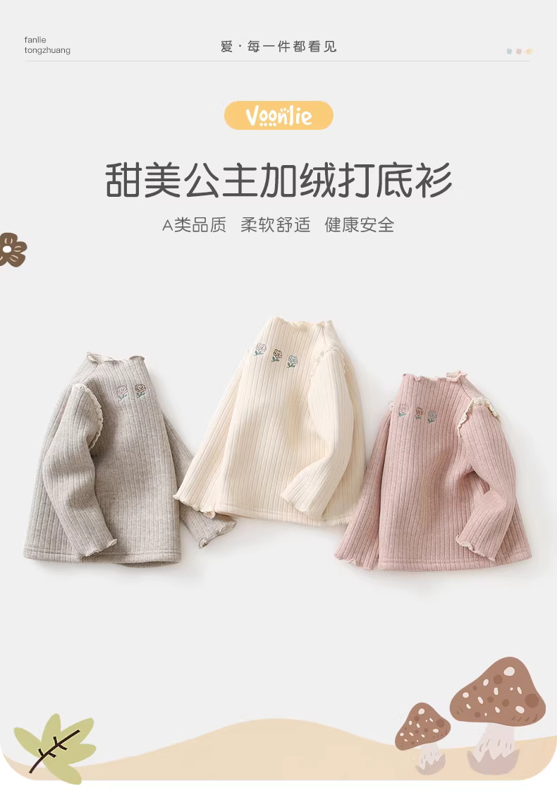- Áo thun dài tay Fanhle cho bé gái Thu/Đông 2025 Áo lót trẻ em cổ cao chất liệu lông cừu Áo bé mùa đông