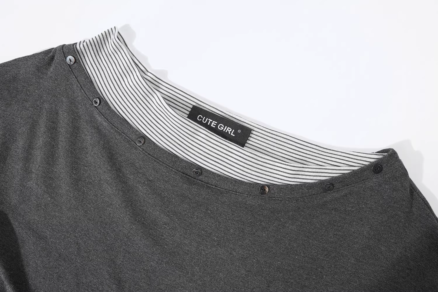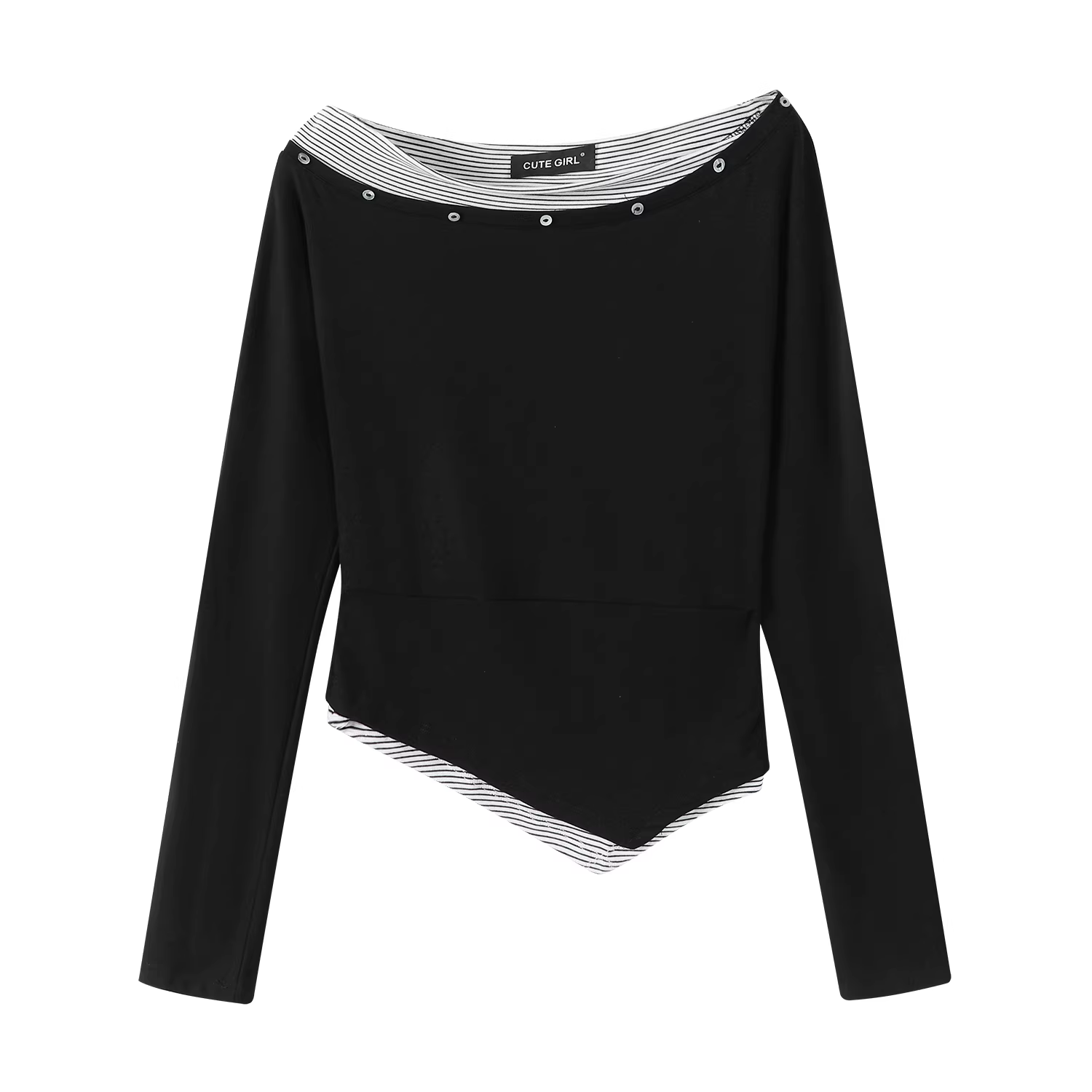- Áo thun dài tay giả hai mảnh bất đối xứng cao cấp của CuteGirl dành cho nữ, áo thun dáng ôm eo cổ điển mùa thu