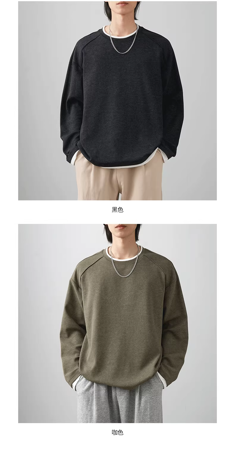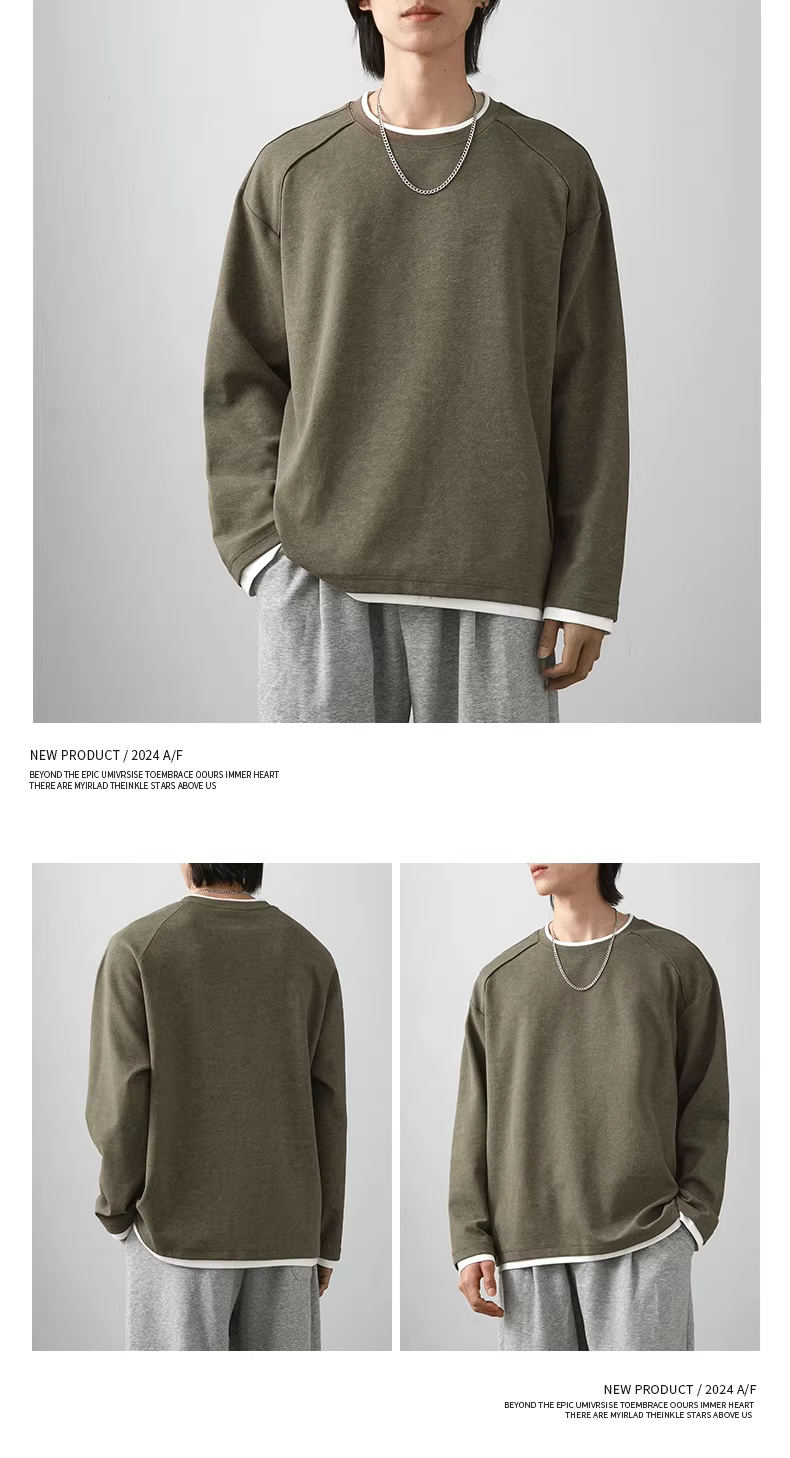 - Áo thun dài tay giả hai mảnh hạng nặng Pure Group 320G dành cho nam, áo thun cổ tròn dáng rộng cổ tròn phong cách retro Mỹ mùa xuân thu.