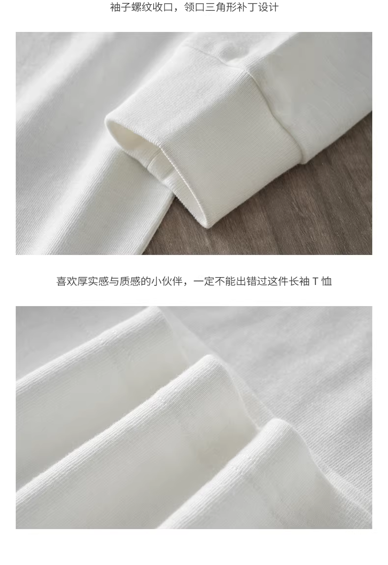 - Áo thun dài tay hạng nặng ba kim 320G dành cho nam, áo len cổ tròn hình tam giác ngược phong cách Mỹ mùa thu, áo sơ mi cotton nguyên chất màu trơn.