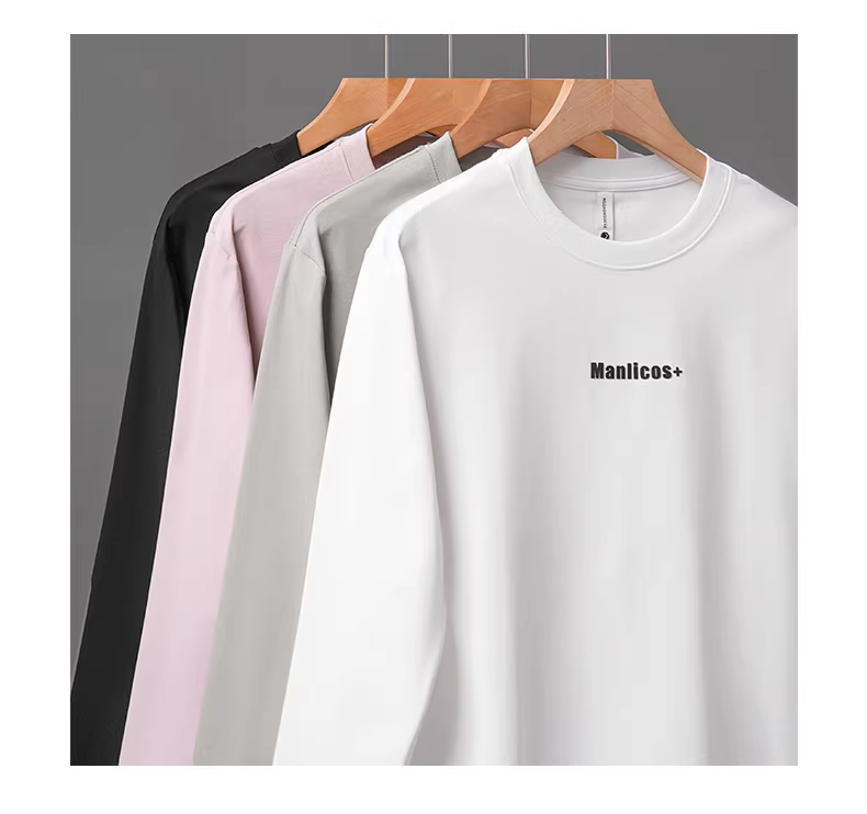 - Áo thun dài tay in chữ nặng ký dành cho nam, phong cách Mỹ mùa thu, dáng rộng, cổ tròn, áo lót, kiểu dáng hợp thời trang.