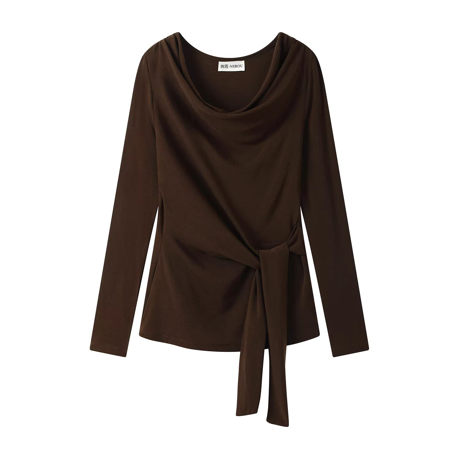 Áo thun dài tay kiểu Pháp không đều, kiểu dáng bất quy tắc, áo lót dành cho nữ, áo dáng ôm mới phù hợp với mùa thu sớm.
