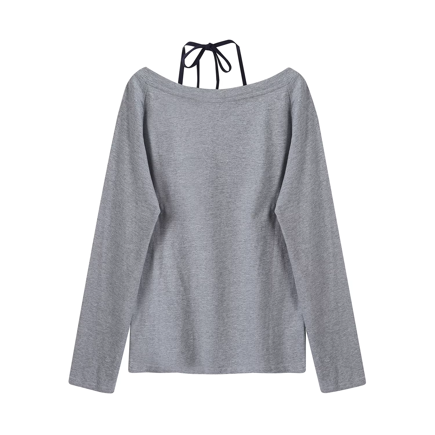 - Áo thun dài tay lệch vai cổ yếm màu xám sành điệu của CuteGirl dành cho nữ, phong cách lười biếng mùa thu, dáng rộng và đa năng, áo ngọt ngào và mát mẻ