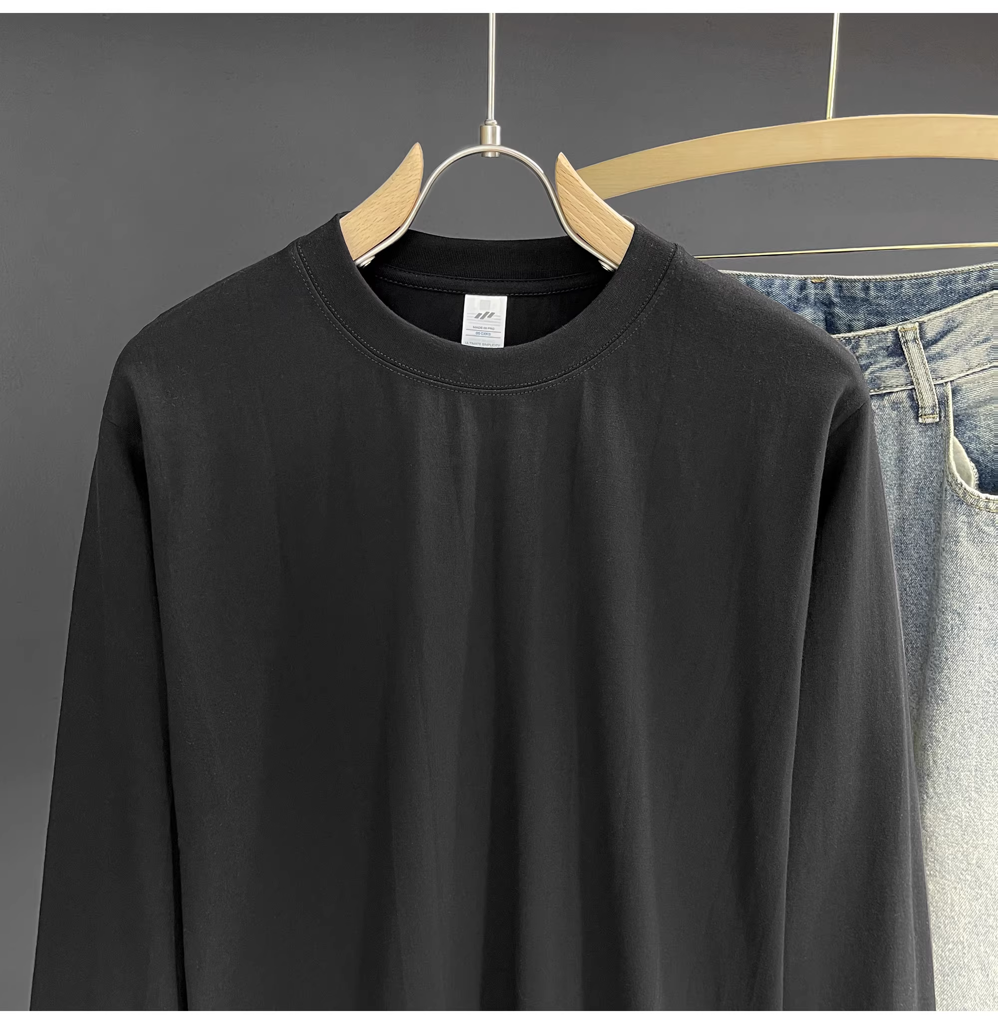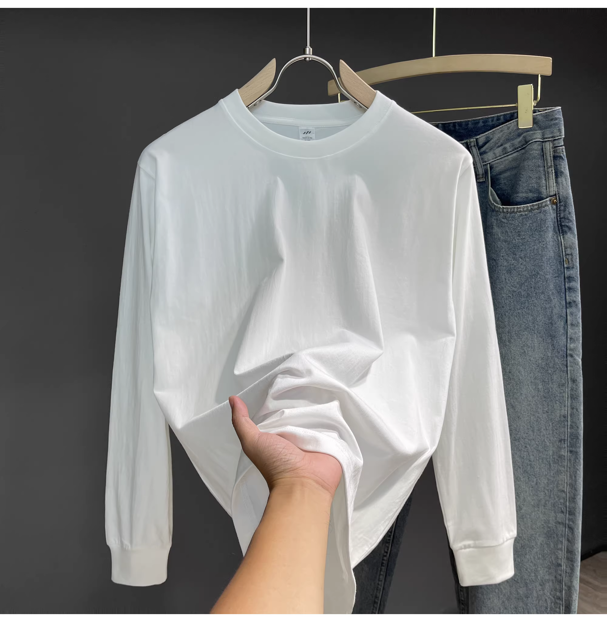 - Áo thun dài tay LUUD đơn giản và thoải mái bằng cotton nguyên chất mùa thu đa năng, áo lót thông thường màu trắng dành cho nam