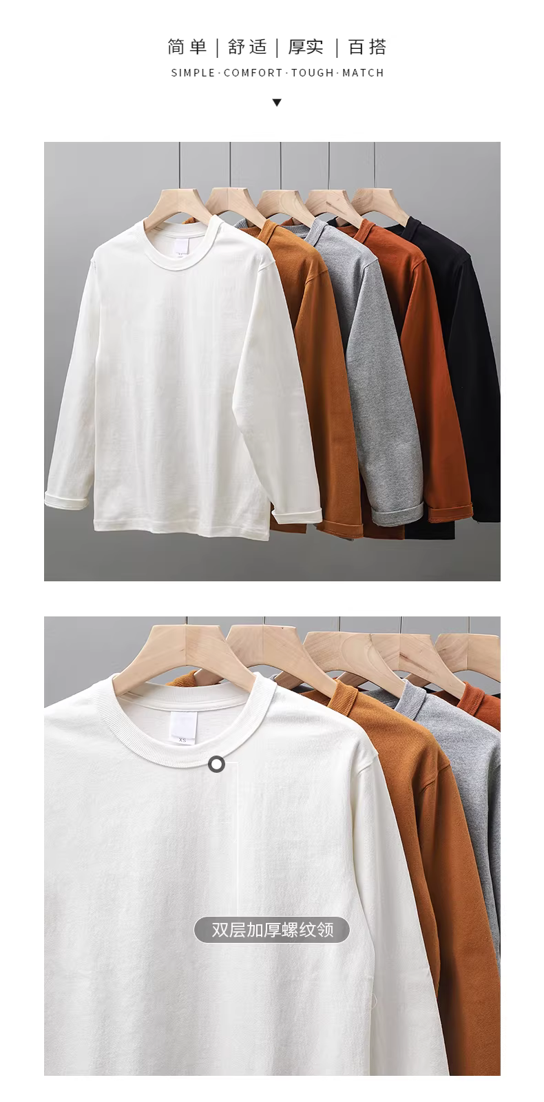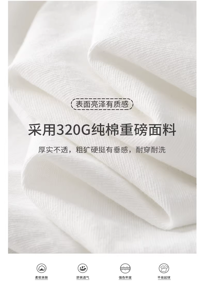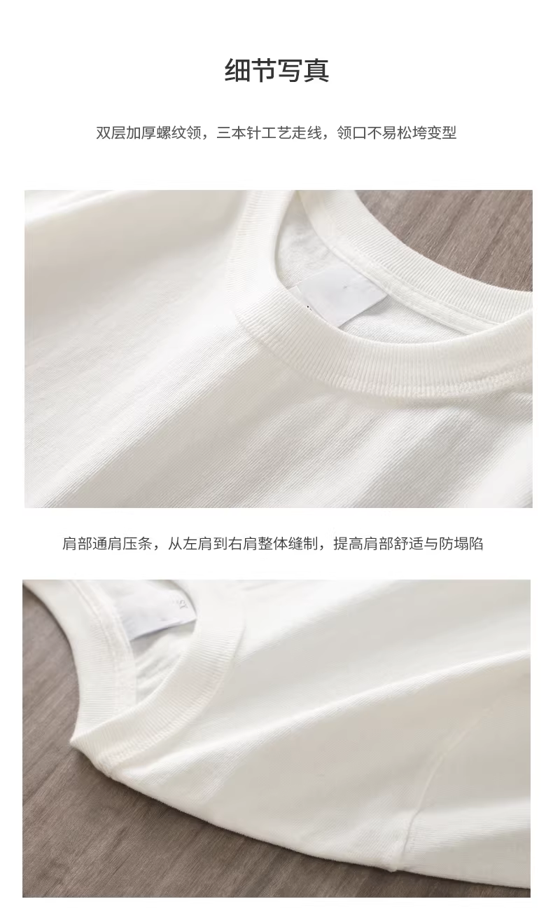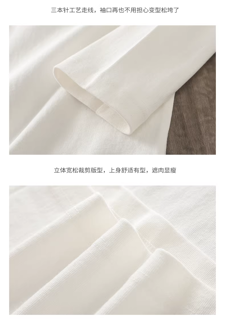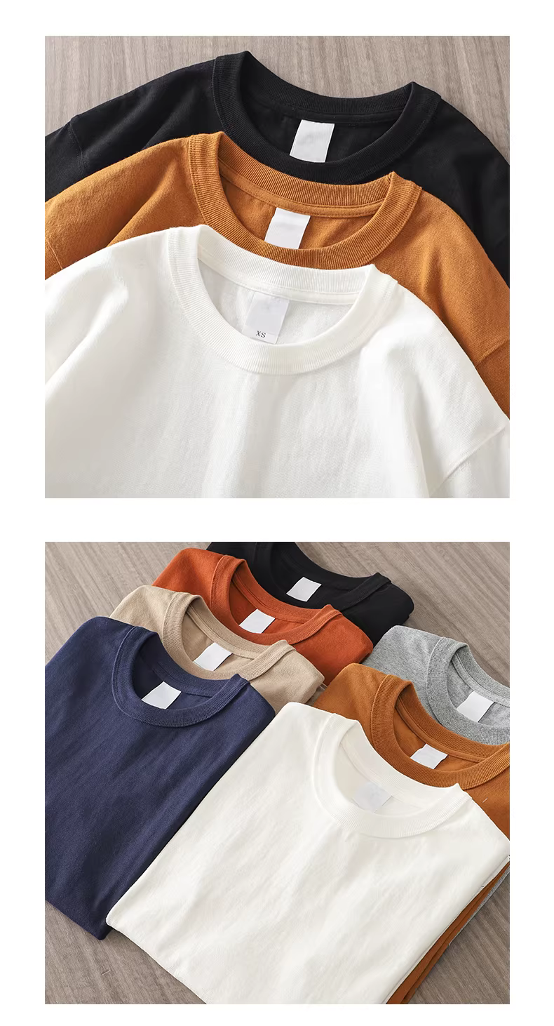 - Áo thun dài tay màu trắng hạng nặng 320G dành cho nam, áo thun cotton nguyên chất cổ tròn phong cách Mỹ mùa xuân và mùa thu, áo sơ mi màu trơn ba đường khâu