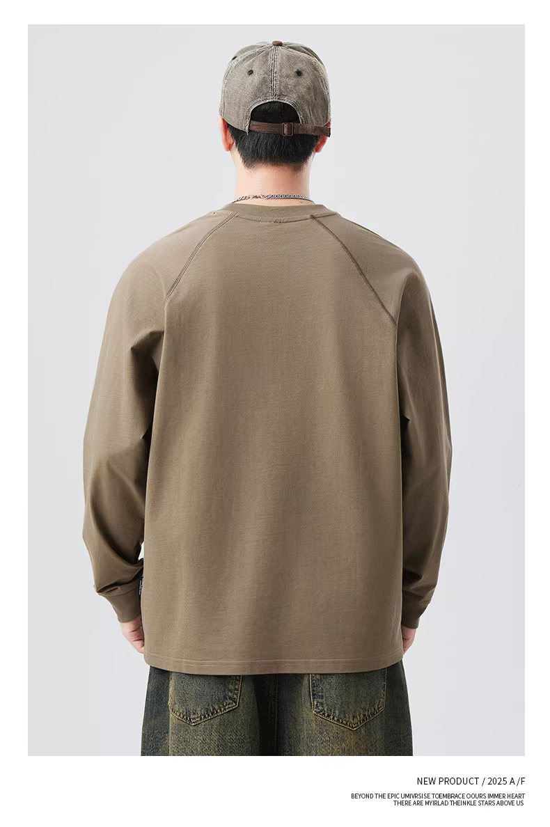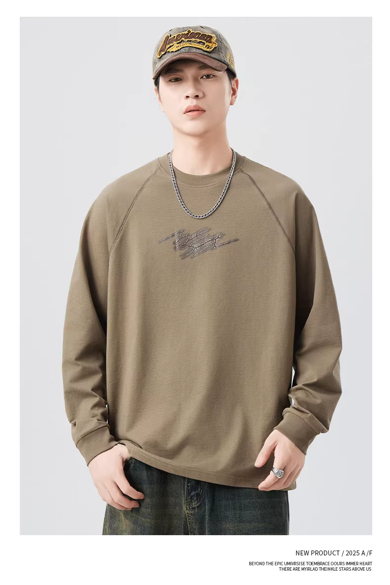 - Áo thun dài tay raglan hạng nặng OMZM dành cho nam, áo sơ mi in họa tiết graffiti mùa thu đông, dáng rộng, cỡ lớn, áo len cổ tròn.