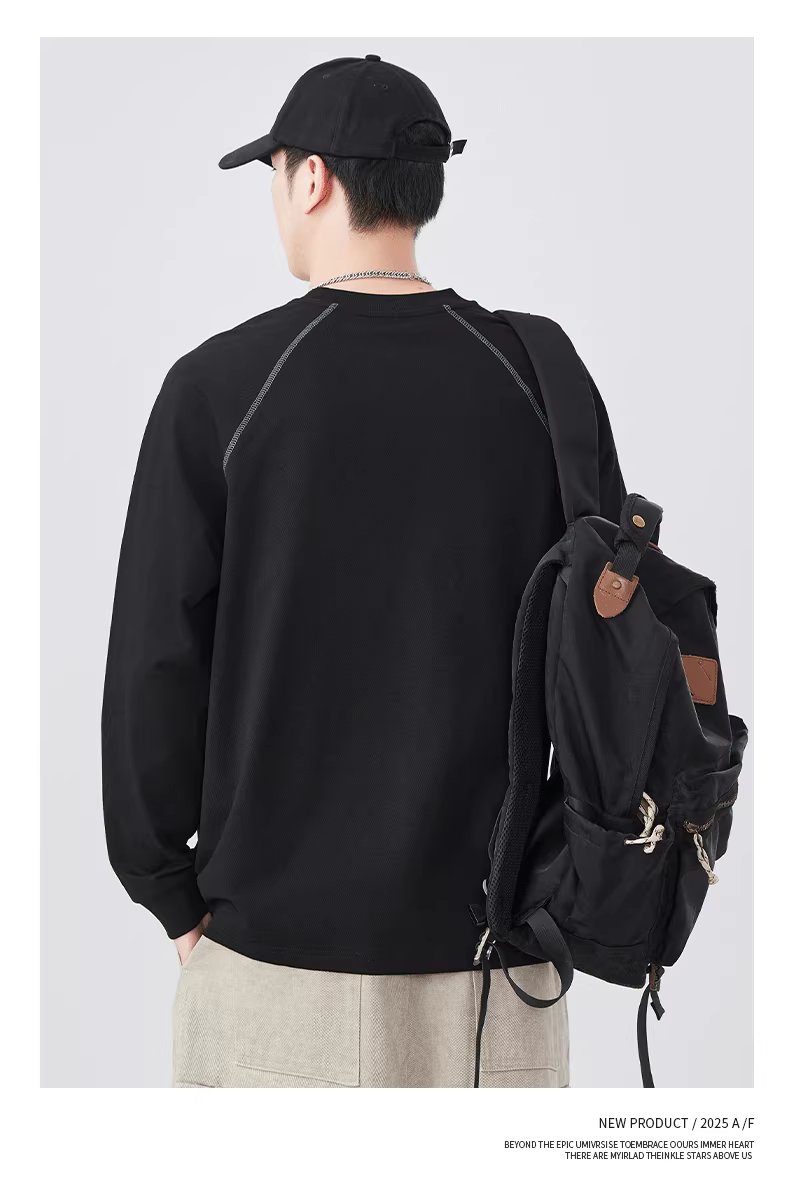 Áo thun dài tay raglan hạng nặng OMZM dành cho nam, áo sơ mi in họa tiết graffiti mùa thu đông, dáng rộng, cỡ lớn, áo len cổ tròn.