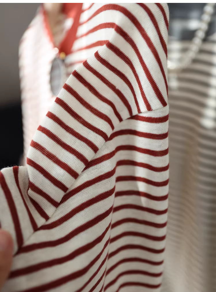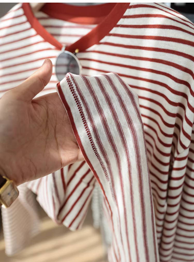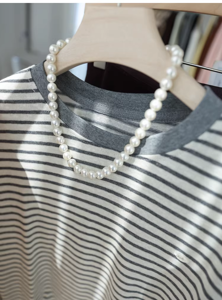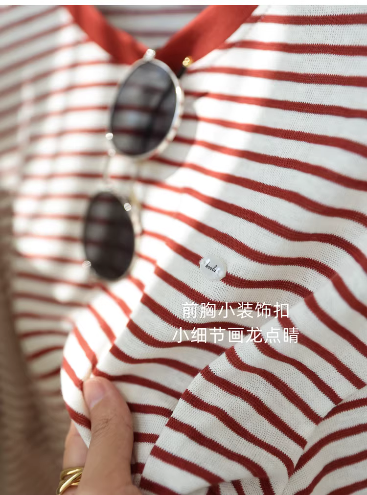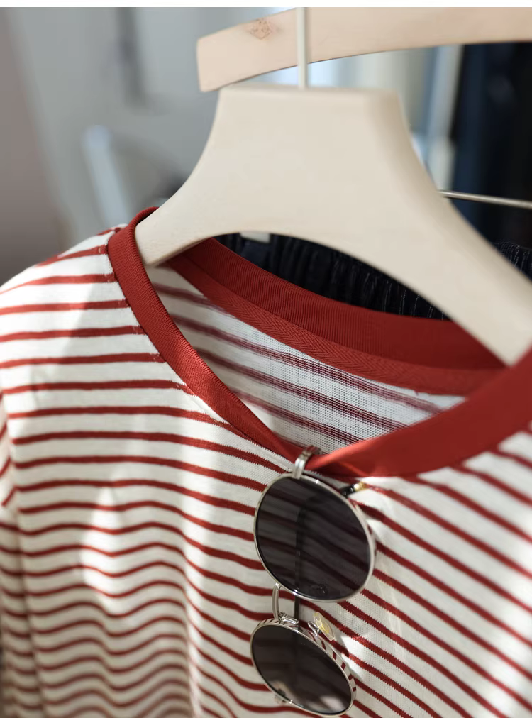 - Áo thun dài tay sọc dáng rộng, cổ tròn, kiểu dáng thoải mái và năng động theo phong cách Hàn Quốc, mới cho mùa thu dành cho nữ.