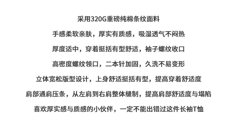 - Áo thun dài tay sọc nặng 320g dành cho nam, áo len cotton nguyên chất dáng rộng mùa thu đông, áo thủy thủ cổ điển, áo sơ mi cổ tròn.