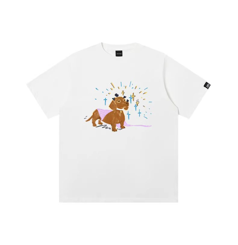 - Áo thun Jungle Tiger & Illustrator Collaboration Star-Eyed Dachshund dành cho nam và nữ Mùa hè 2025 Trang phục cặp đôi hạng nặng tay ngắn
