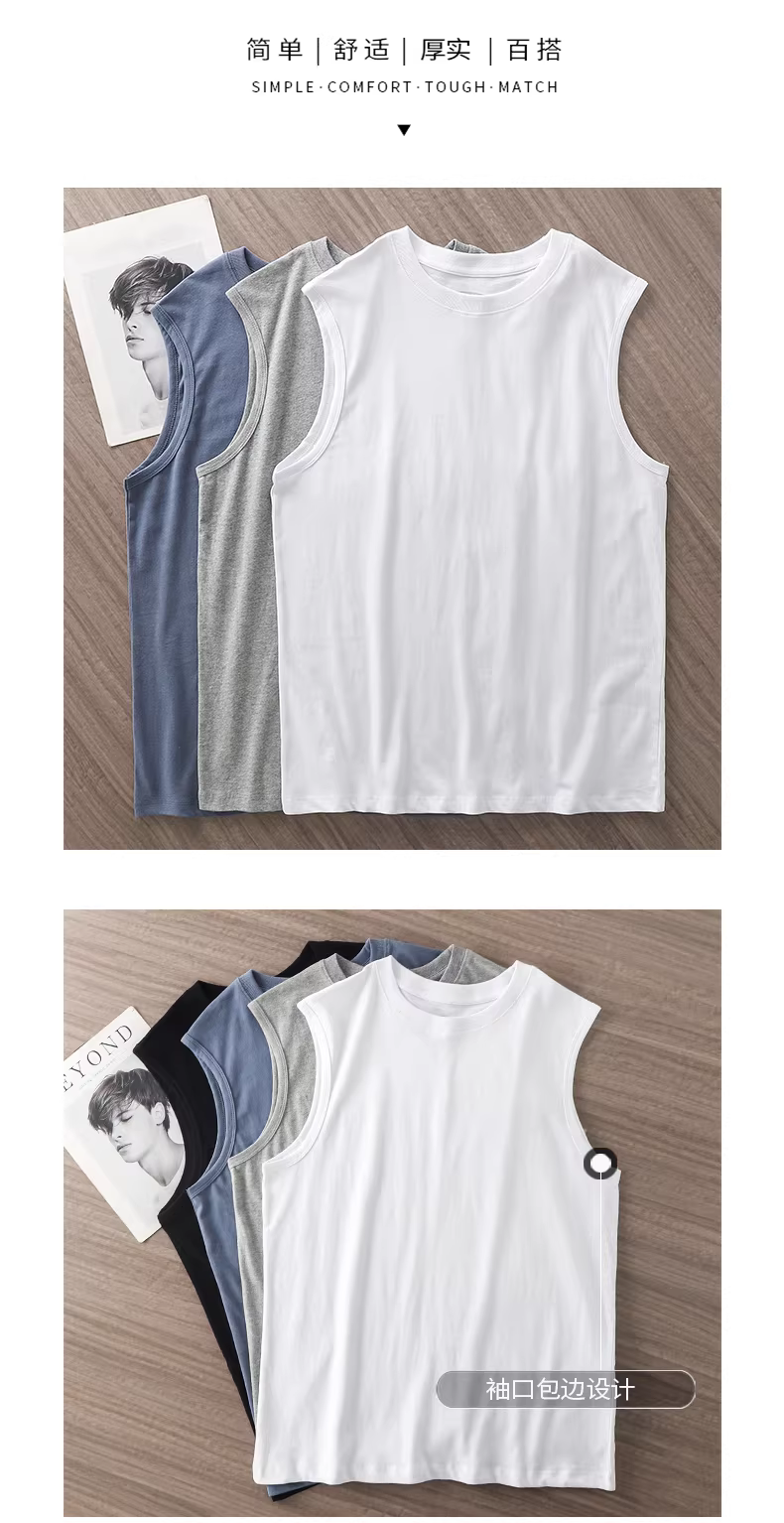 Áo thun không tay hạng nặng của Nhật Bản dành cho nam, cotton nguyên chất Tân Cương, dáng rộng, màu trơn, áo thể thao thể dục, áo ba lỗ phong cách Nhật Bản dành cho nam, mùa hè