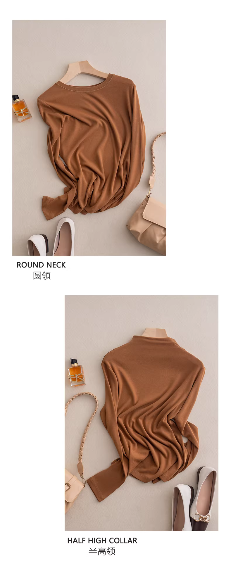 圆领+半高领 2个领型可选,人手多件打包走