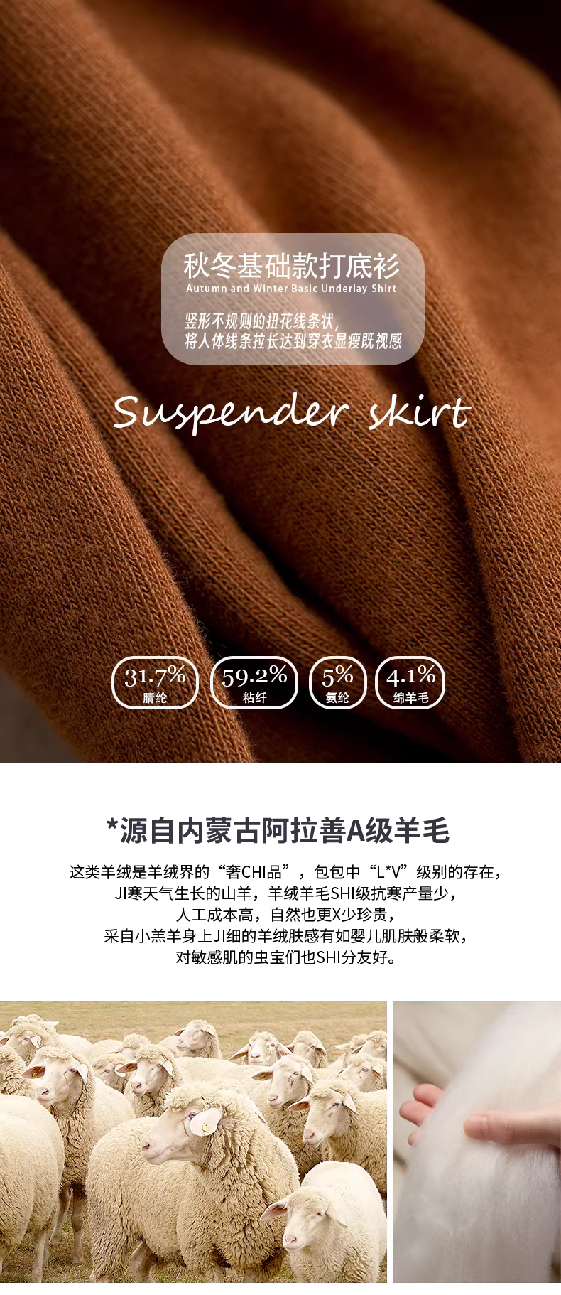 4.1绵羊毛 59.2粘纤 31.7腈纶 5氨纶