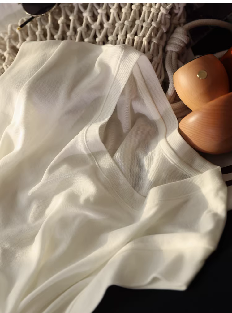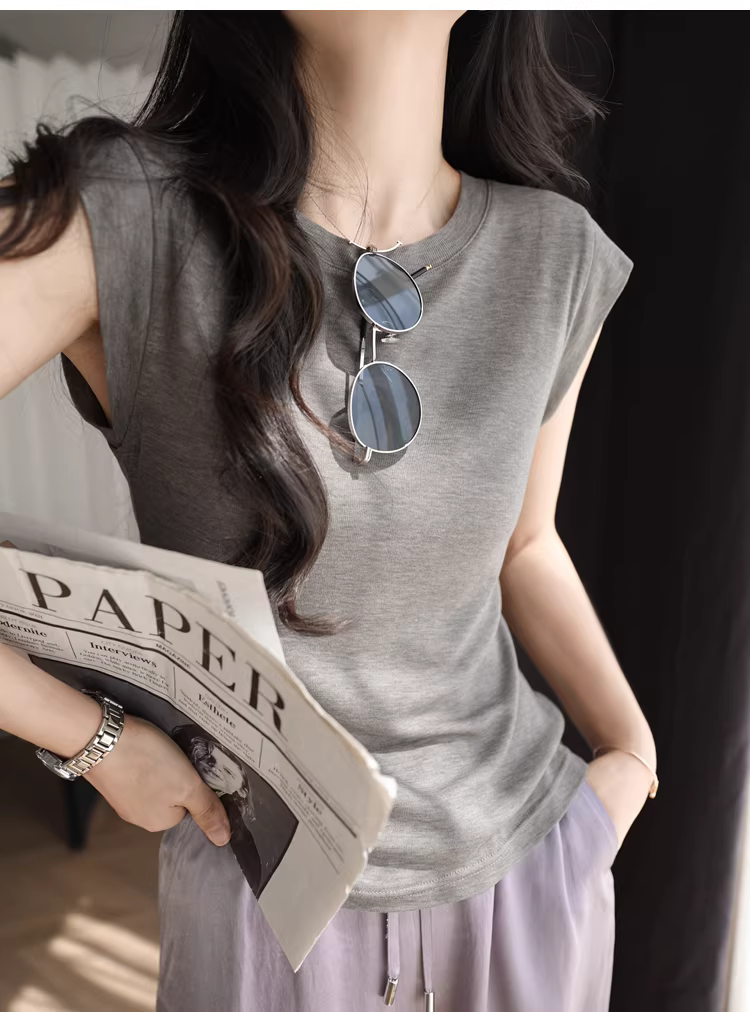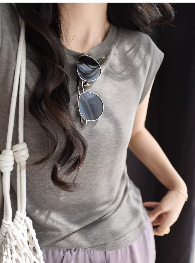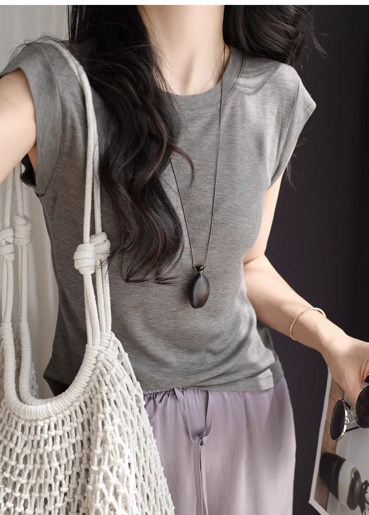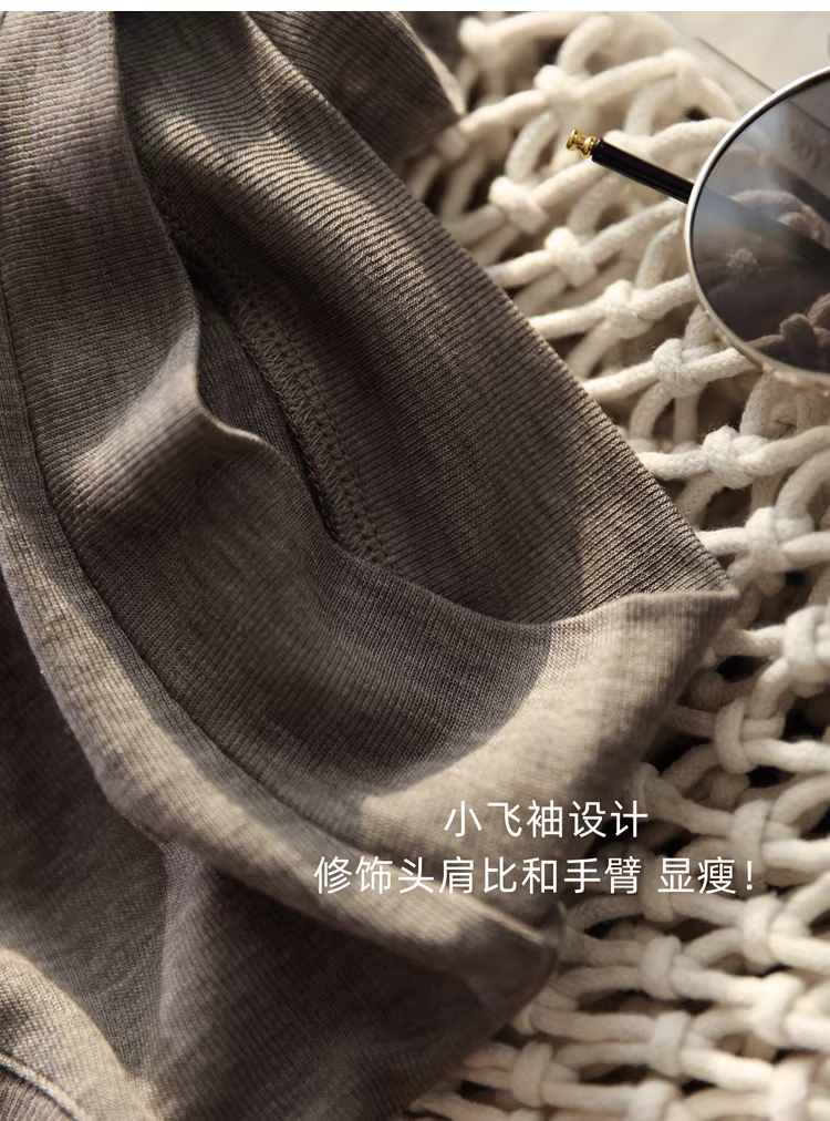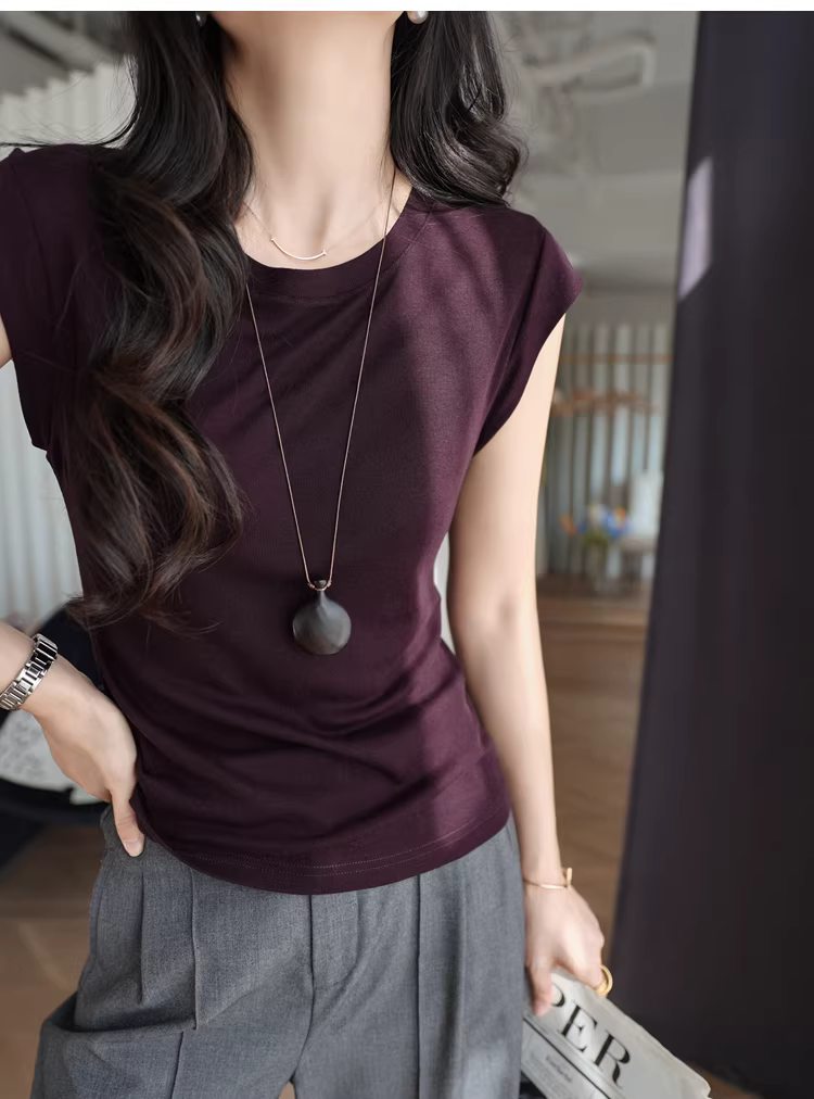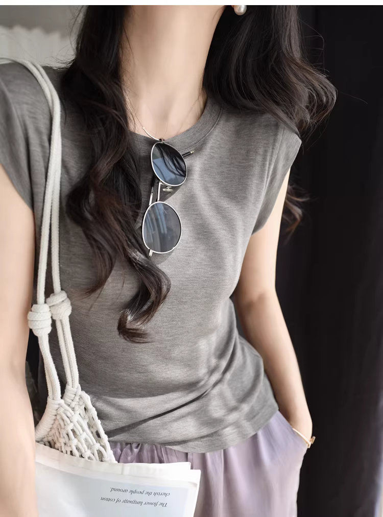 Áo thun lụa Lyocell mềm mại, bay bổng, kiểu dáng ôm dáng, tay bồng, cổ tròn, tay ngắn dành cho nữ, mẫu mới mùa hè