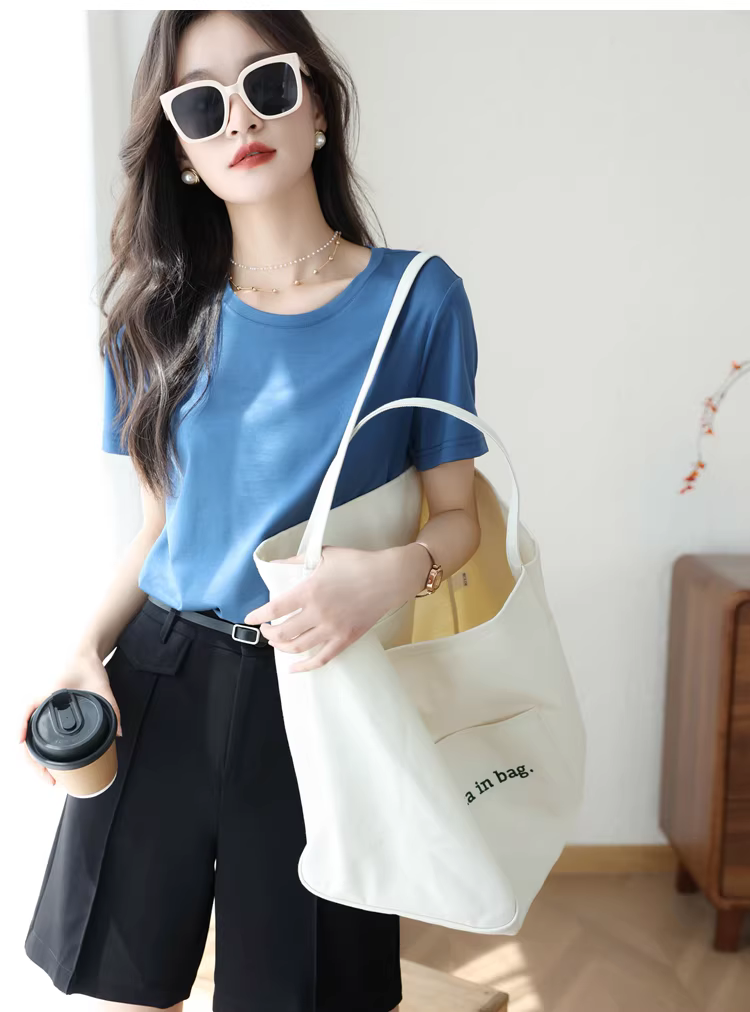 - Áo thun lụa tơ tằm Tencel nhiều màu! Cổ tròn/cổ V, chất liệu cotton lụa mát mẻ và thoải mái, kiểu dáng đơn giản và đa năng, tay ngắn, dành cho nữ, mùa hè.