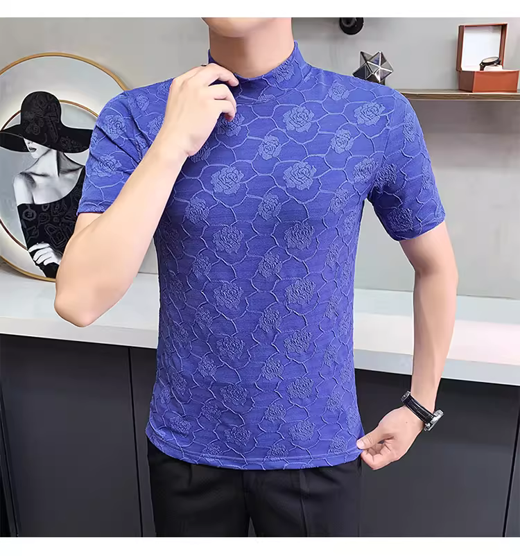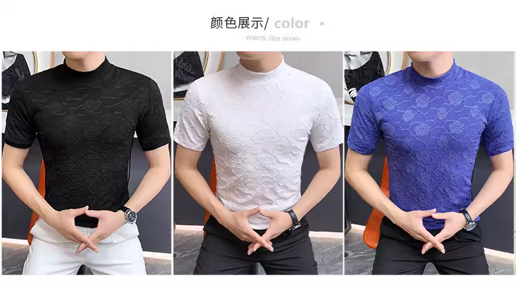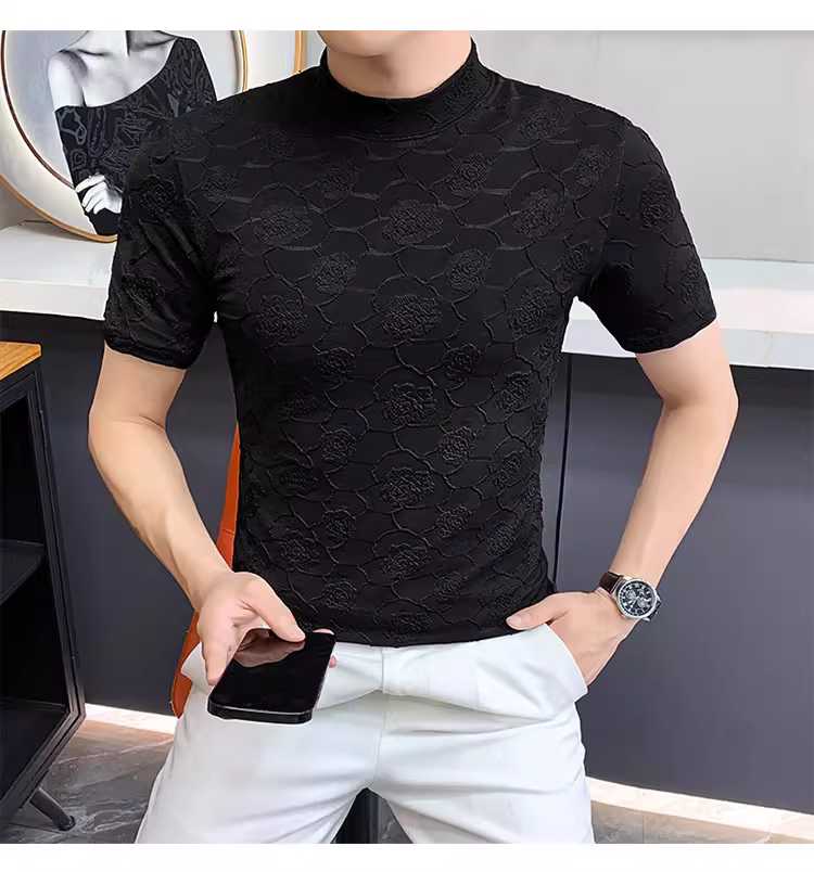 - Áo thun nam cao cấp dệt kim cổ tròn tay ngắn, thời trang thu đông 2025, kiểu dáng ôm body, hợp xu hướng, mặc lót bên trong