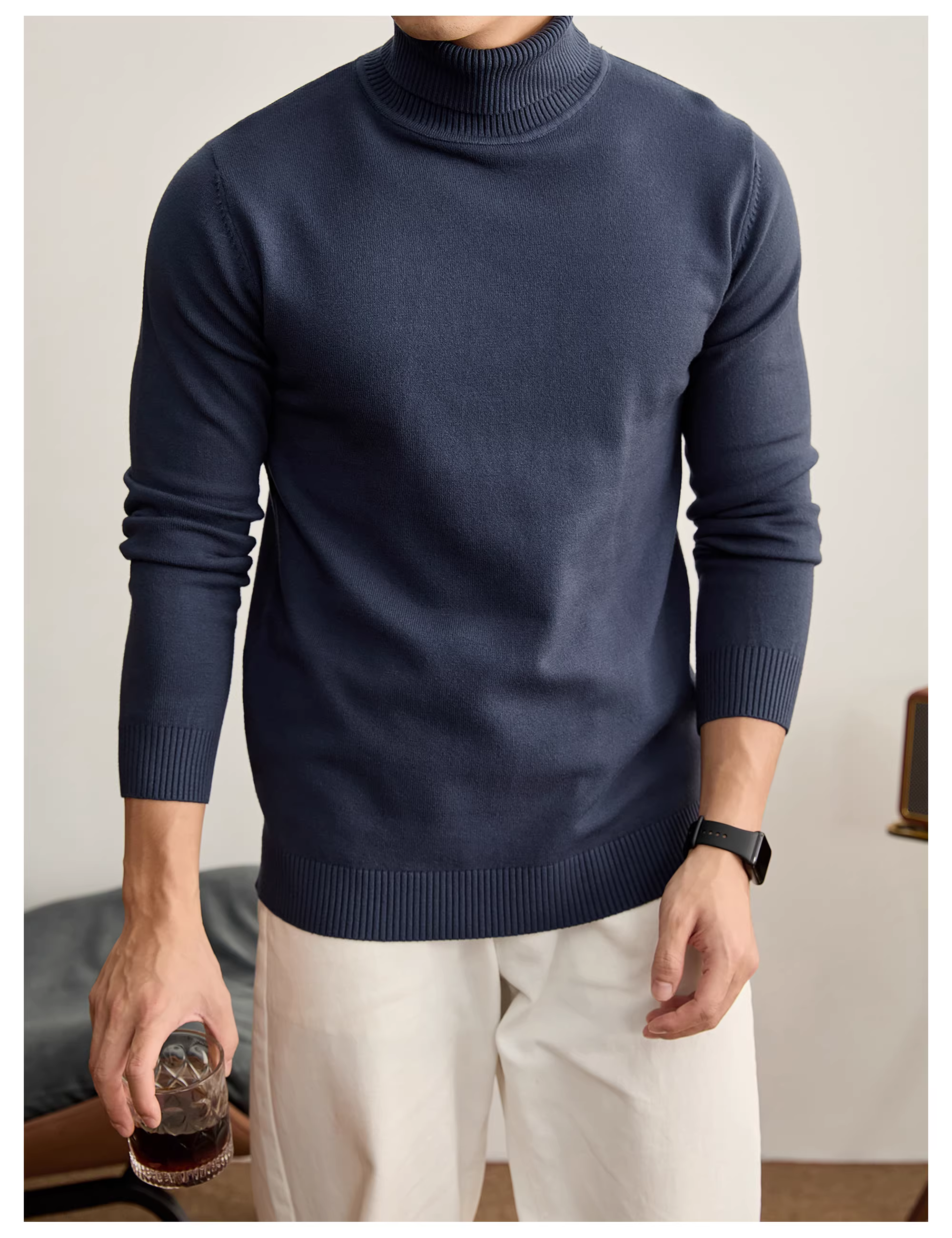 - Áo thun nam cổ cao ôm sát giữ ấm LUUD, được làm từ sợi modal core-spun và sợi chống xù.
