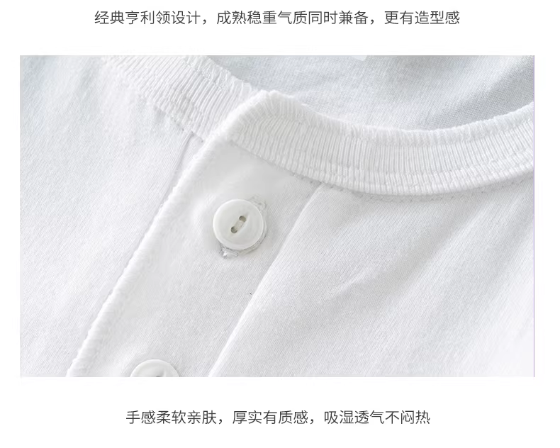 - Áo thun nam cổ henley chất cotton 100% dày dặn 250G, tay ngắn, mùa hè, dáng rộng, cổ henley, phong cách Mỹ cổ điển, mạnh mẽ, màu trắng