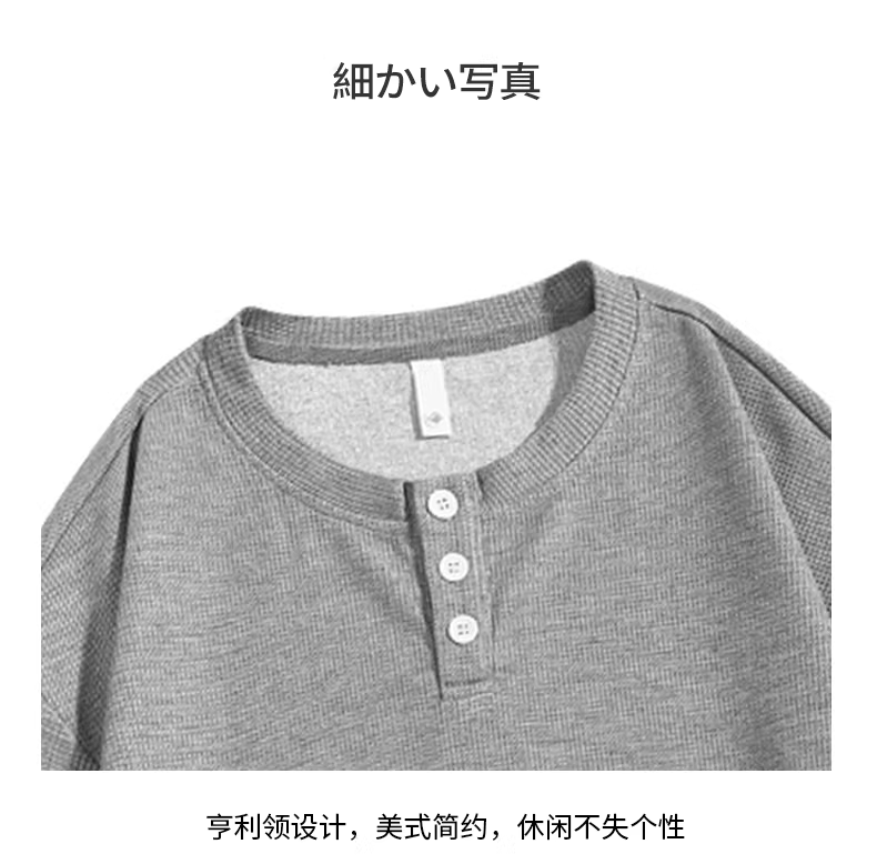 - Áo thun nam cổ Henry chất liệu vải waffle dày dặn, kiểu dáng Mỹ mùa thu, áo len rộng rãi, áo thun dài tay mặc thường ngày, lớp áo lót.
