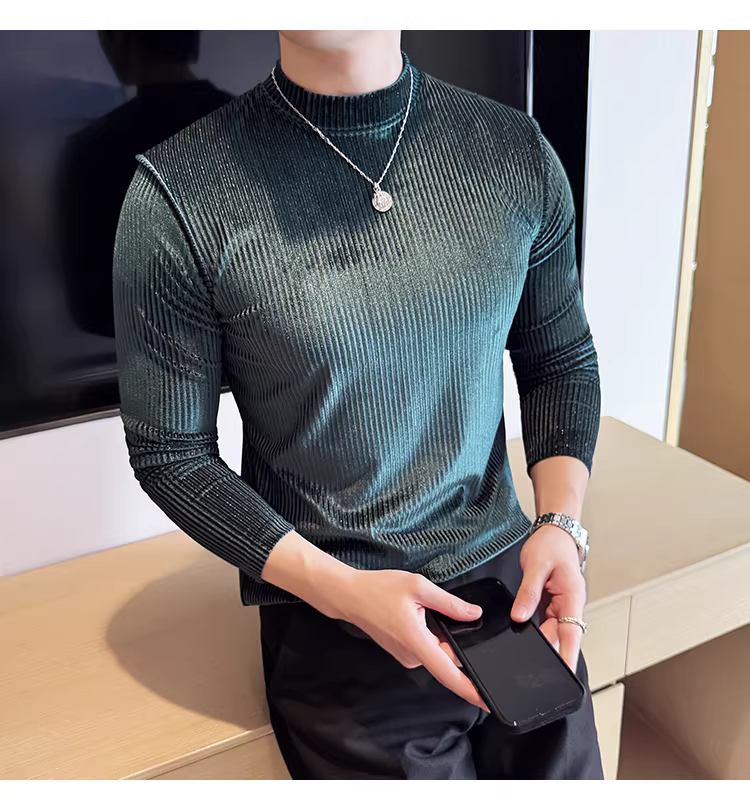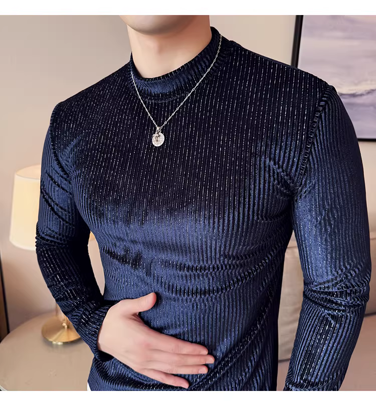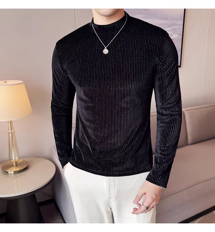 - Áo thun nam cổ lọ nhung dệt kim dài tay, thời trang thu đông 2025 kiểu dáng ôm body, áo lót cổ nửa cao