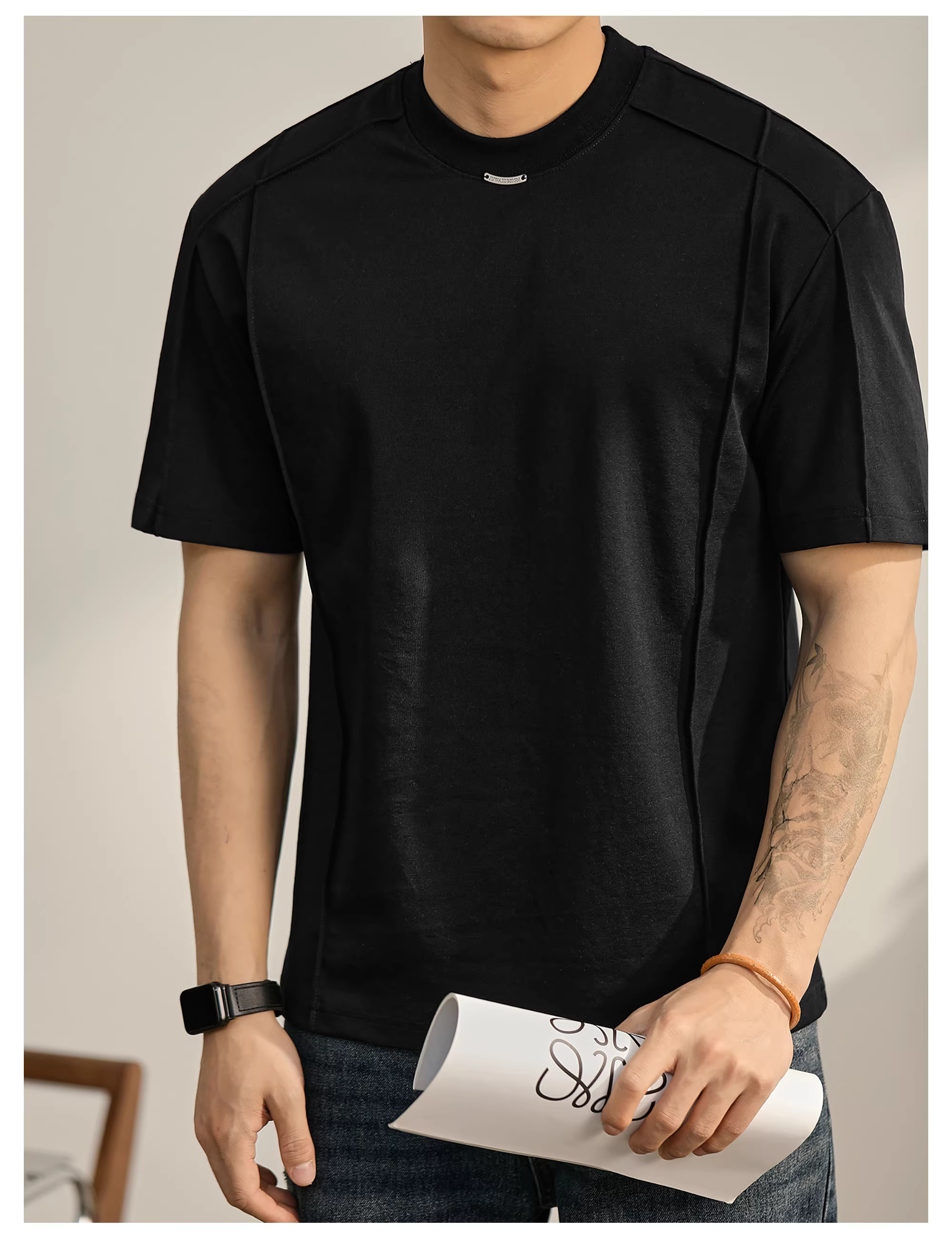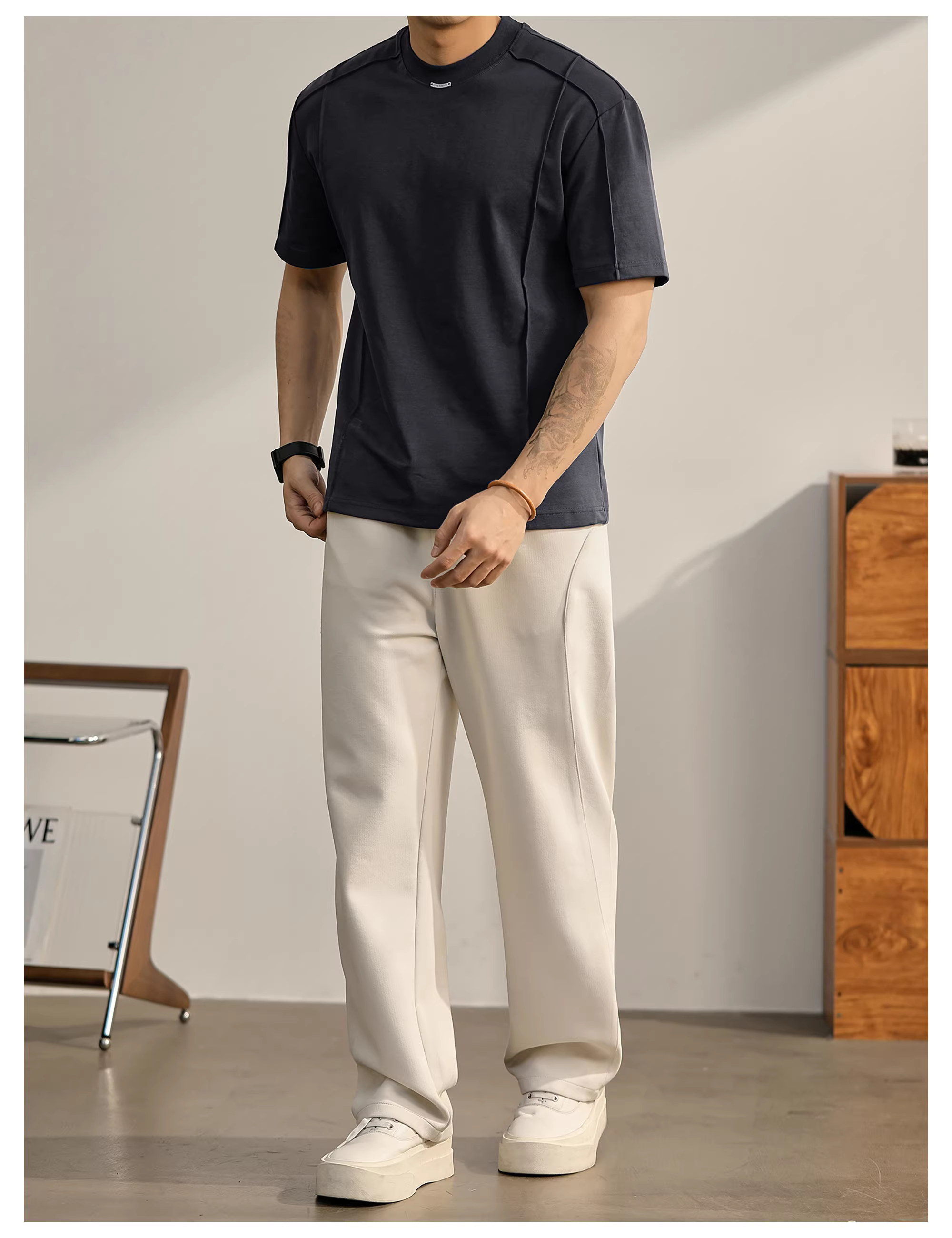 Áo thun nam cổ tròn LUUD, áo thun cotton mát mẻ hai mặt mùa hè, tay ngắn thoải mái, phong cách thành thị, đa năng