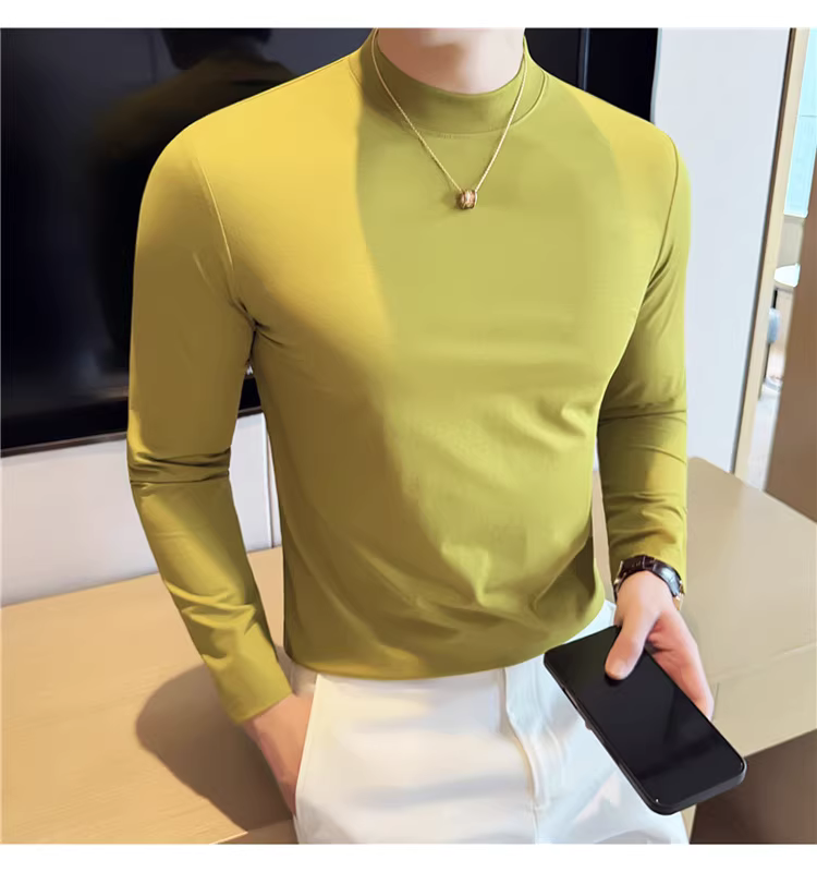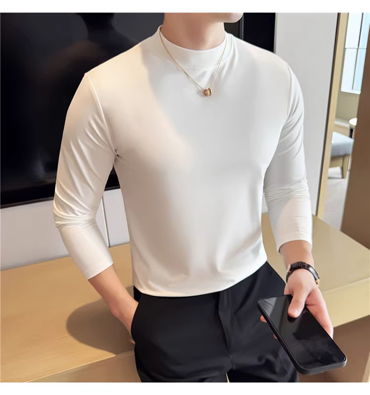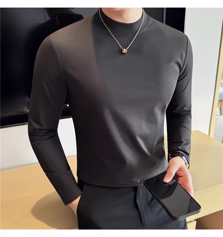 - Áo thun nam dài tay chất lượng cao cho mùa thu đông, màu trơn, đa năng, thân thiện với da, co giãn, thoải mái, áo thun ôm sát cơ thể.