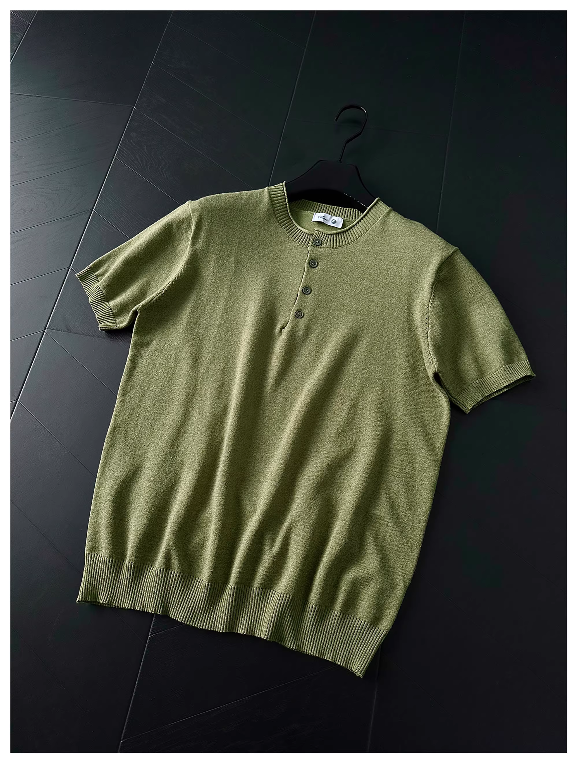 - Áo thun nam JIEYI kiểu Hàn Quốc thời trang, chất liệu mềm mại, dáng suôn, tay ngắn, màu trơn, đa năng, thoáng khí, cổ Henry, chất liệu dệt kim.