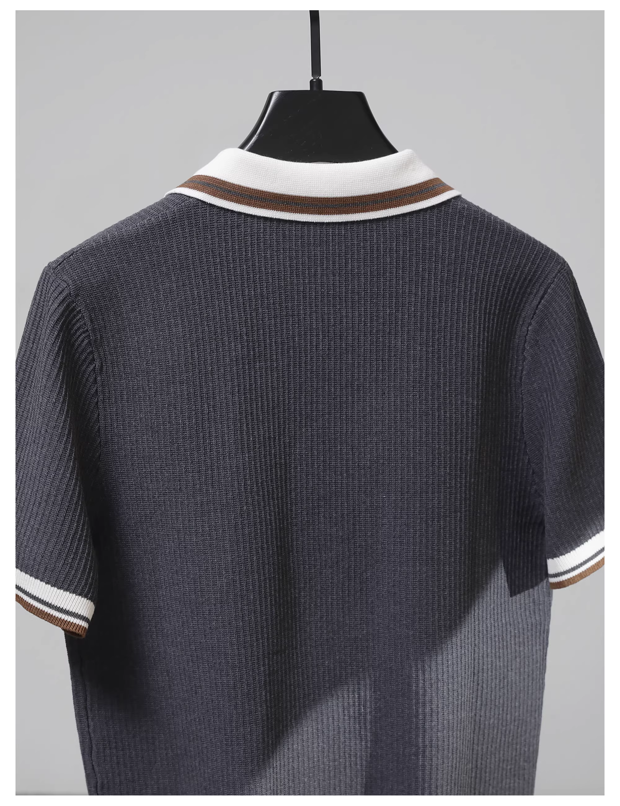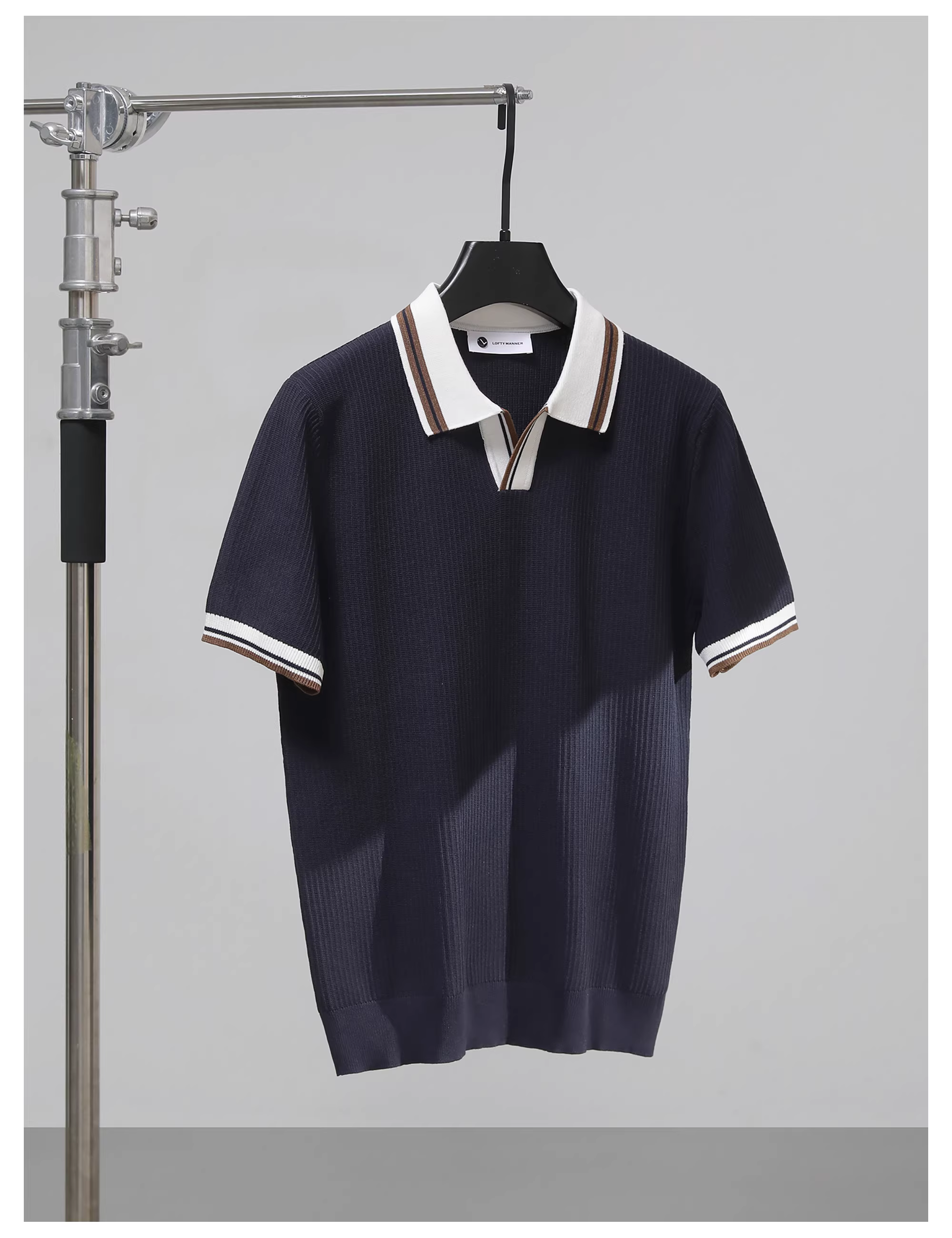 Áo thun nam LUUD chất liệu pha lụa mát mẻ, cổ chữ V, áo Polo dáng ôm màu phối, chất liệu dệt kim.