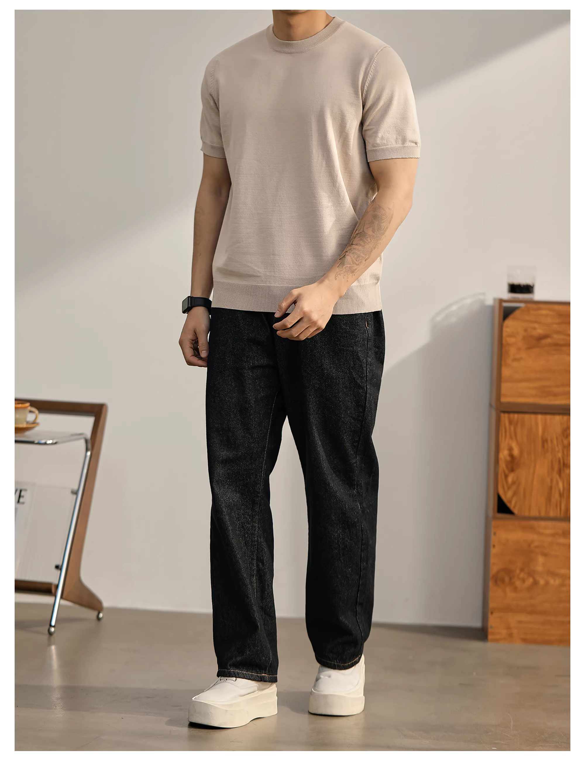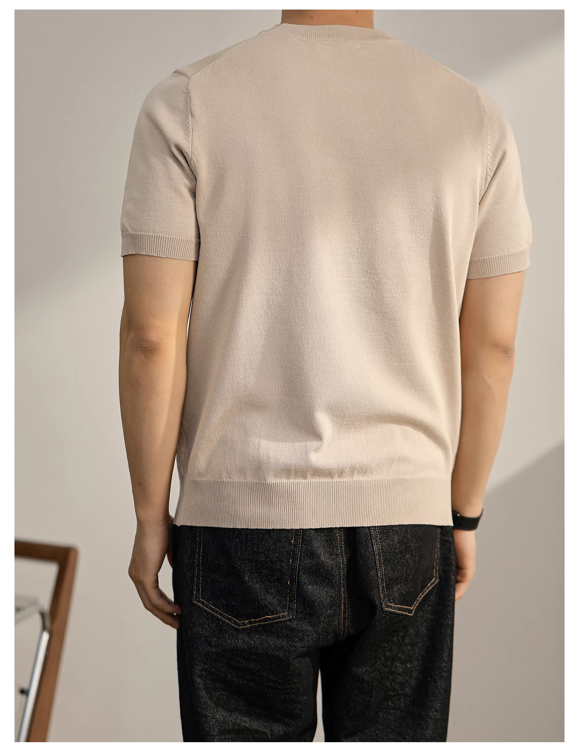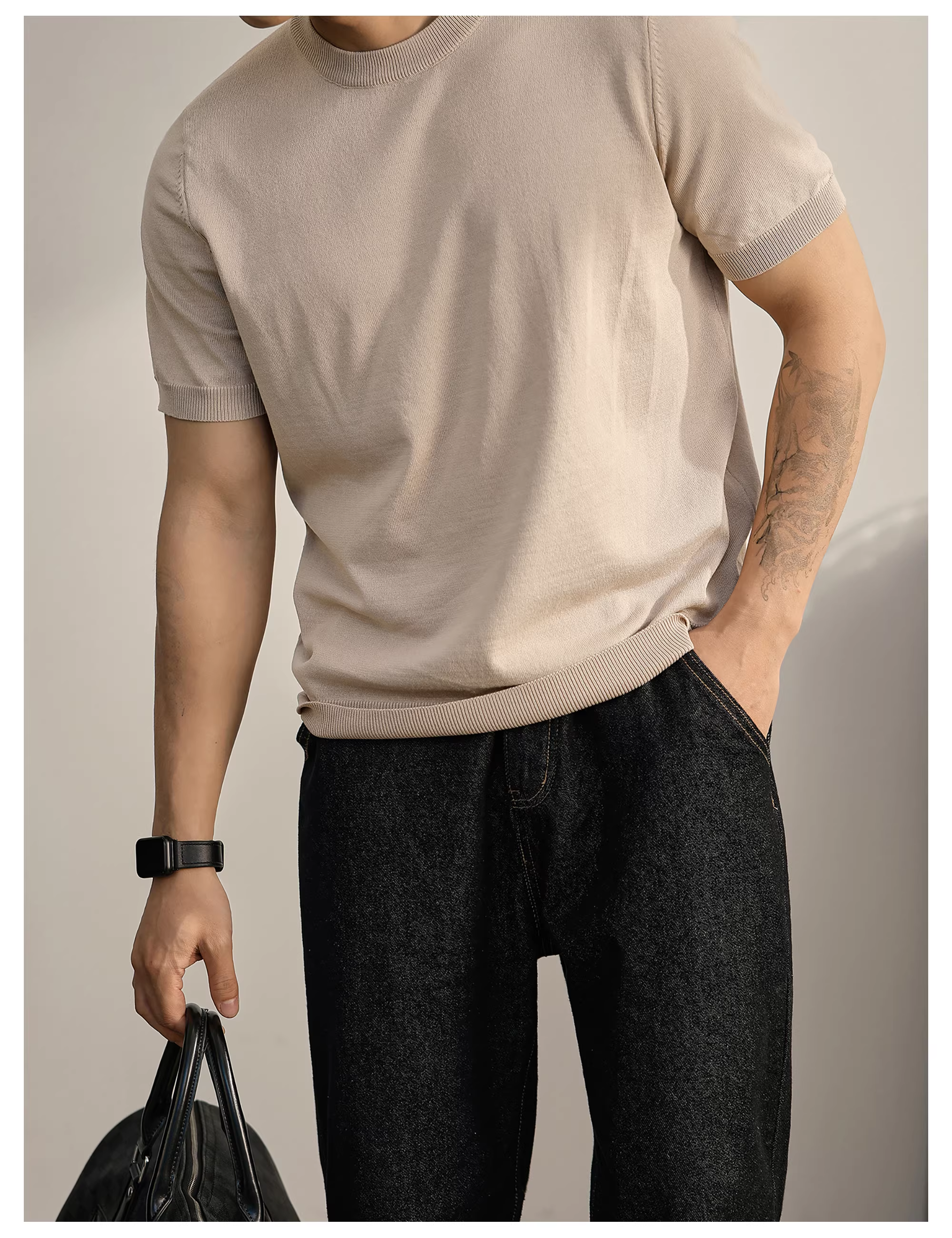 Áo thun nam LUUD phong cách Hàn Quốc nhẹ nhàng sang trọng mát mẻ bằng vải lụa dệt kim mùa hè mát mẻ màu trơn hợp thời trang áo sơ mi ngắn tay giản dị