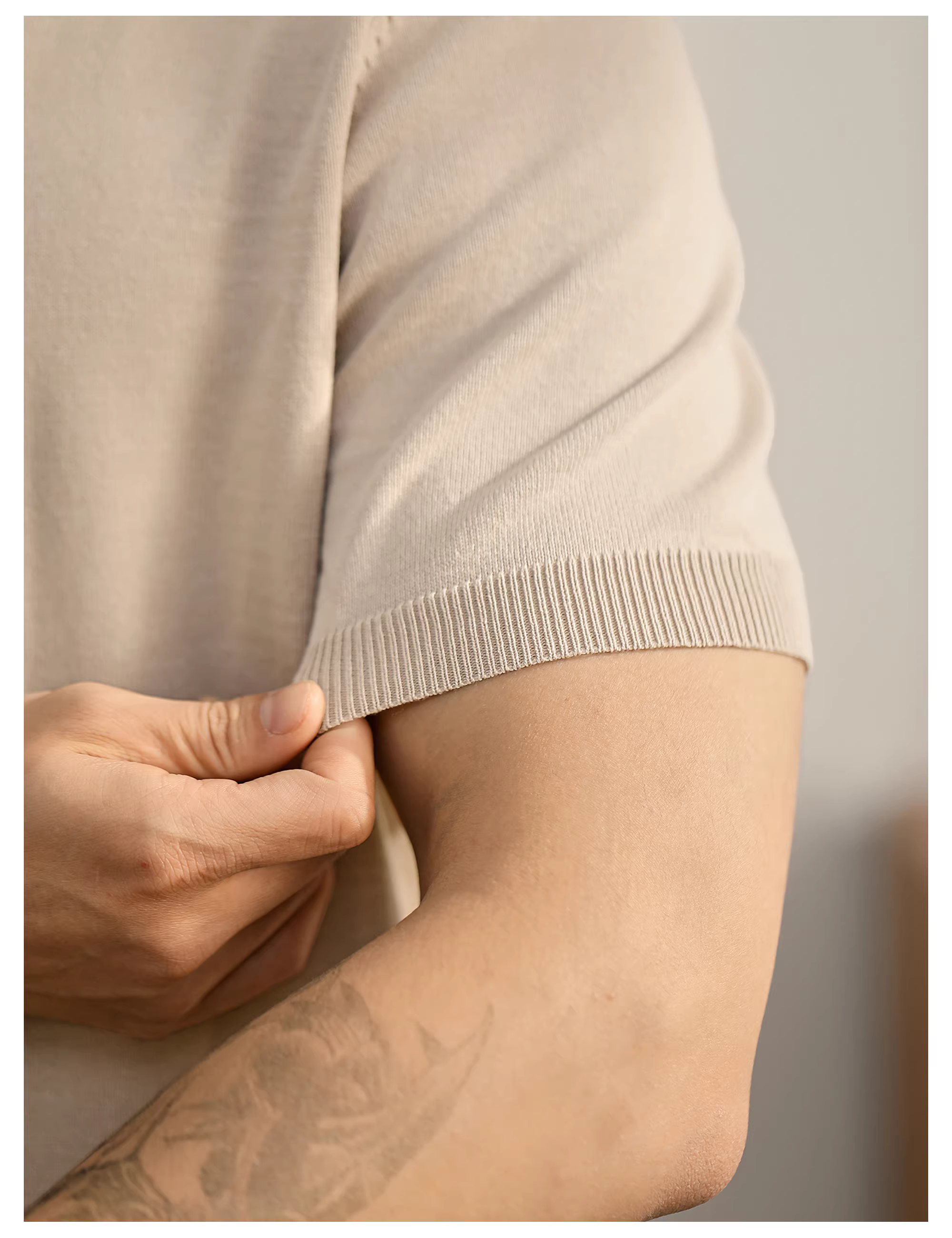 - Áo thun nam LUUD phong cách Hàn Quốc nhẹ nhàng sang trọng mát mẻ bằng vải lụa dệt kim mùa hè mát mẻ màu trơn hợp thời trang áo sơ mi ngắn tay giản dị
