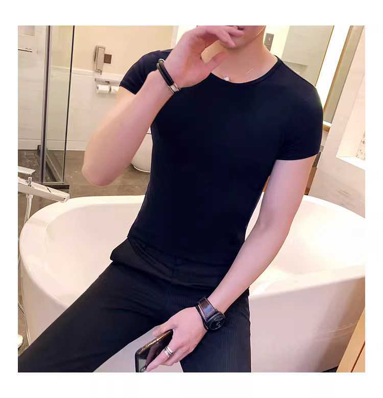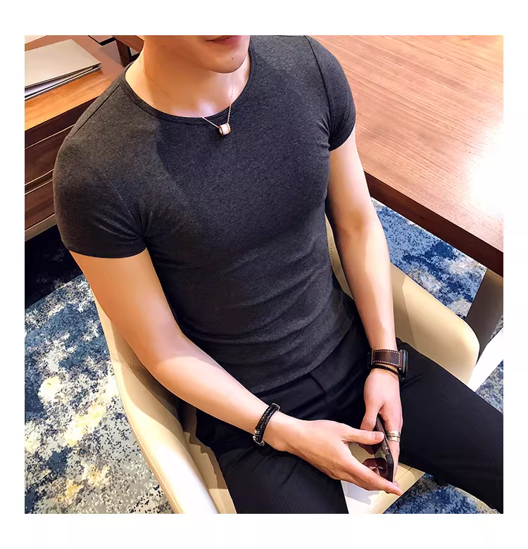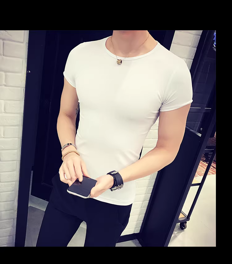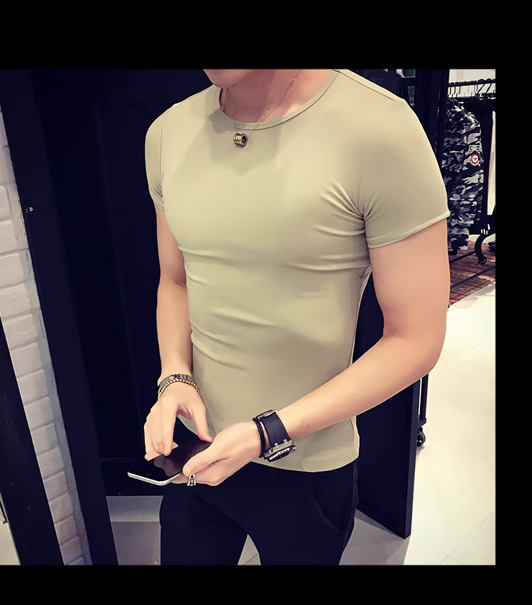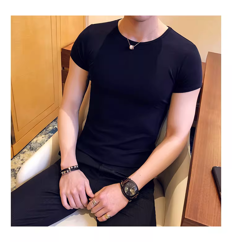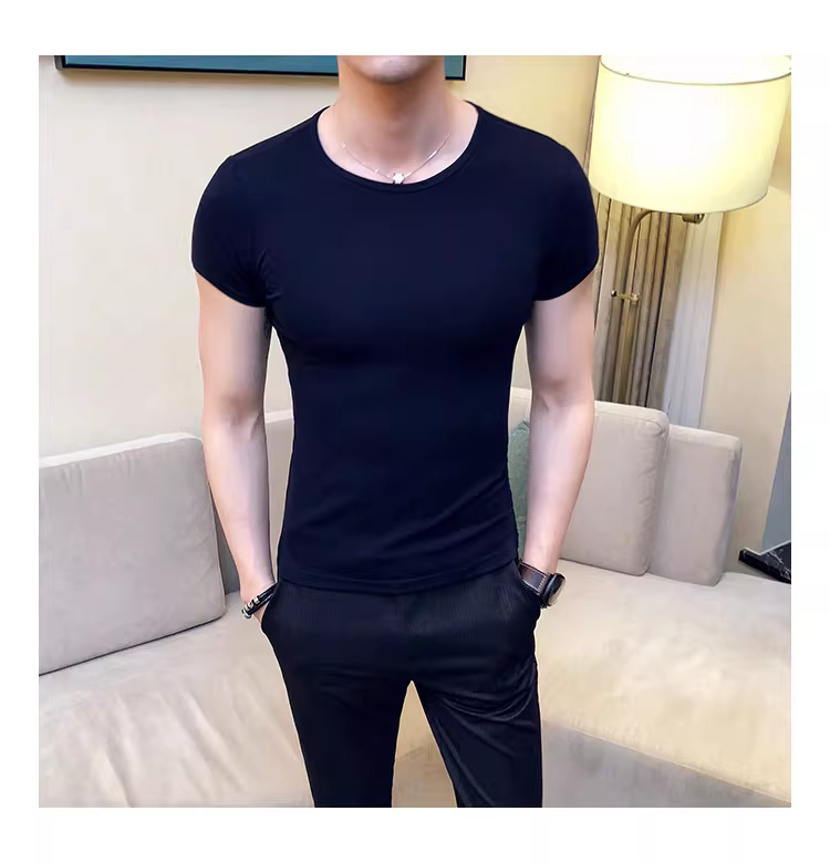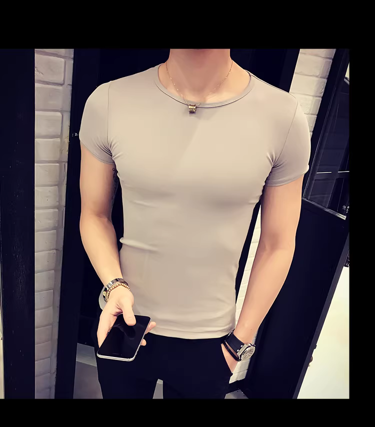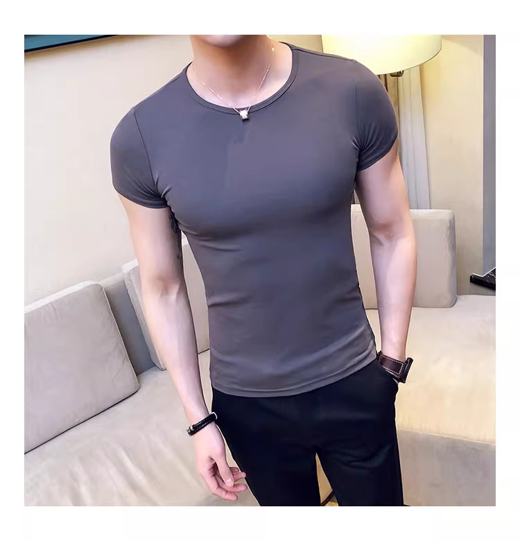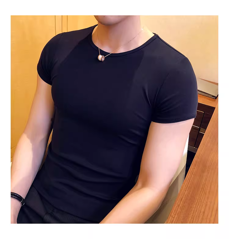 - Áo thun nam ngắn tay bó sát, kiểu dáng mùa hè mới, chất liệu cotton mỏng mát như băng, áo thun cao cấp ôm sát chất liệu lụa đá.