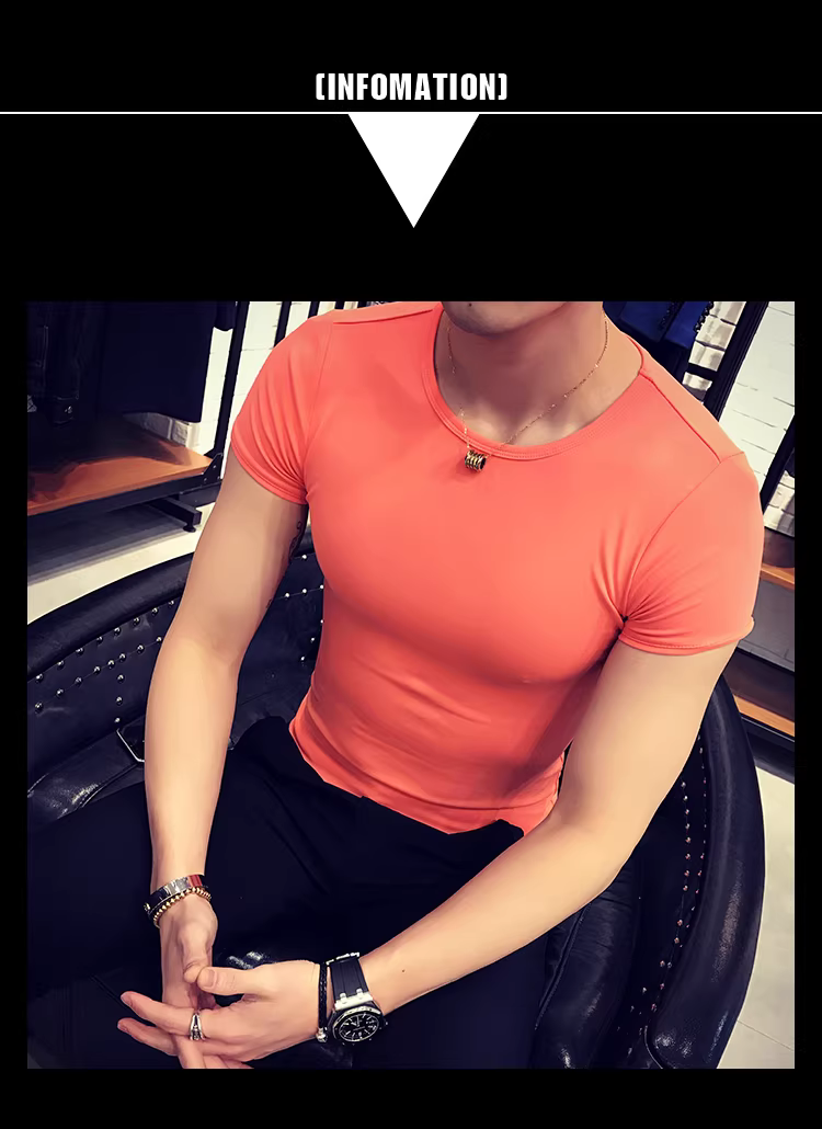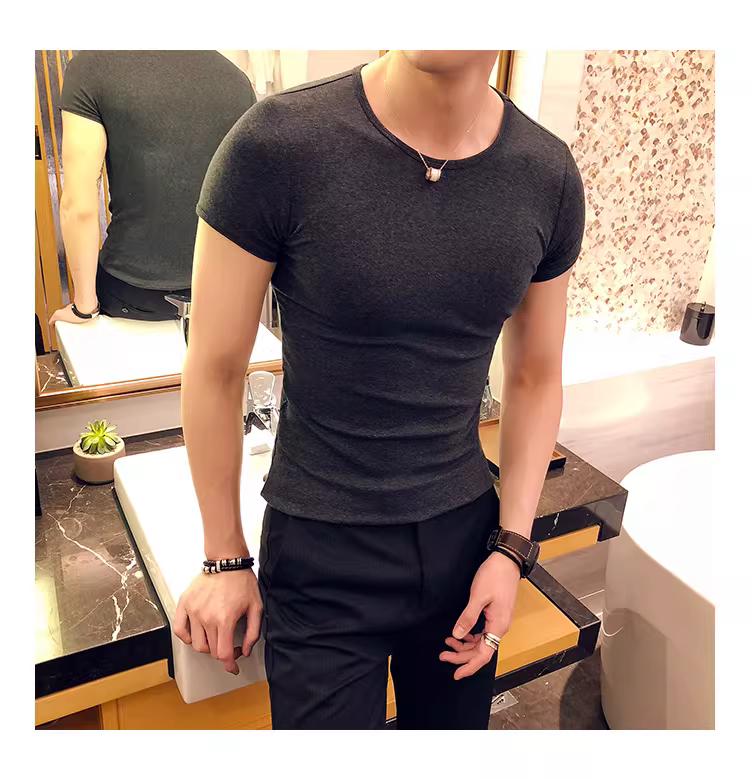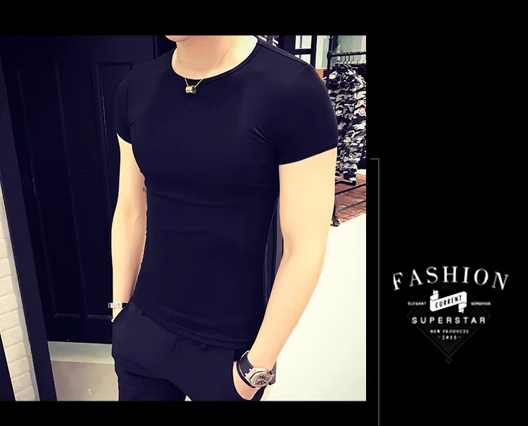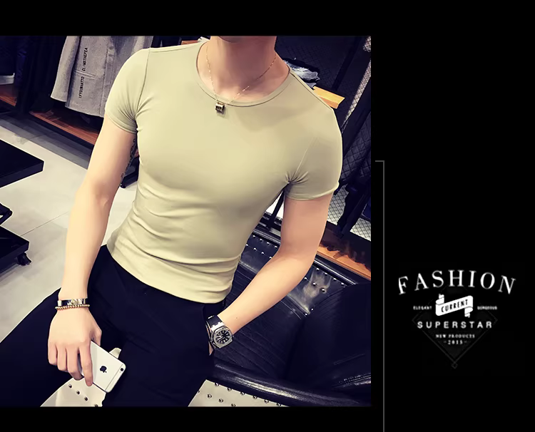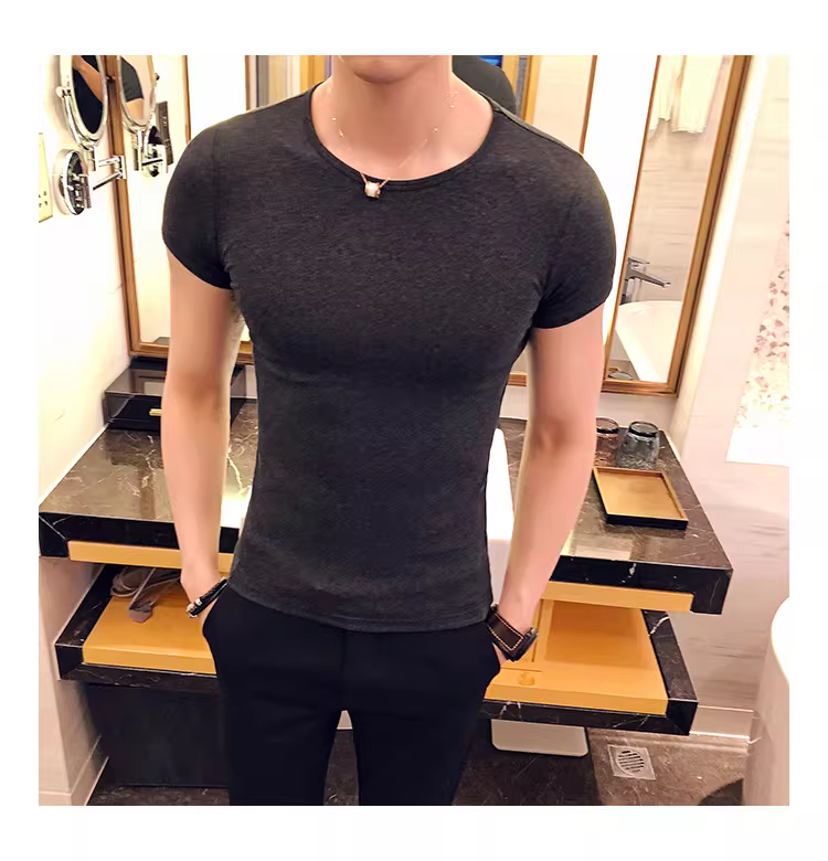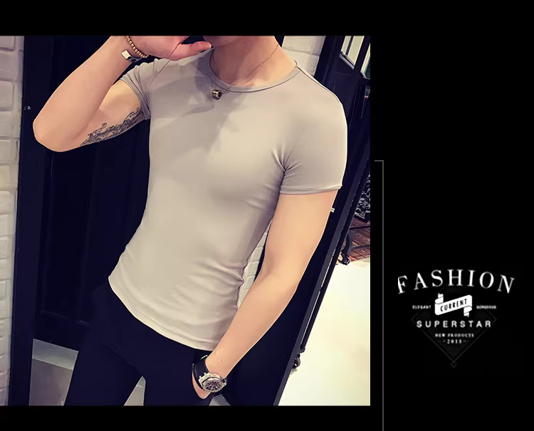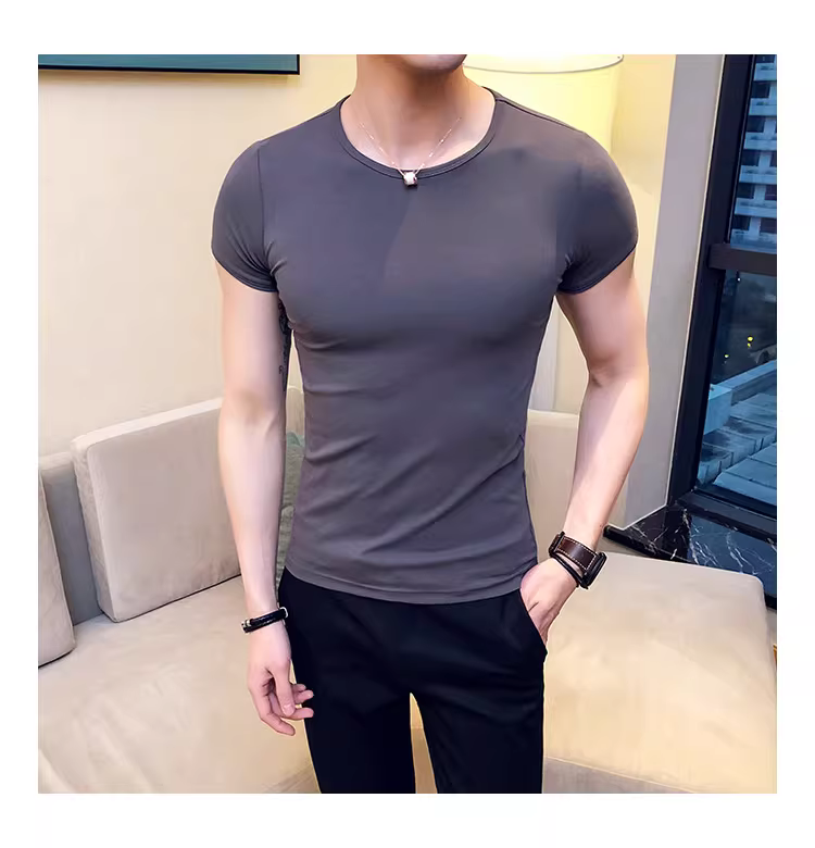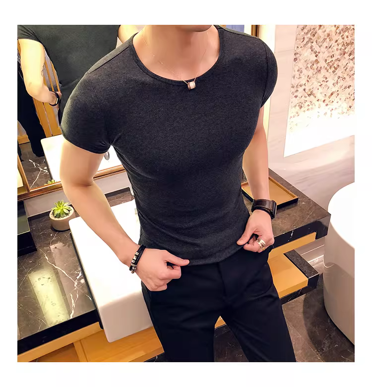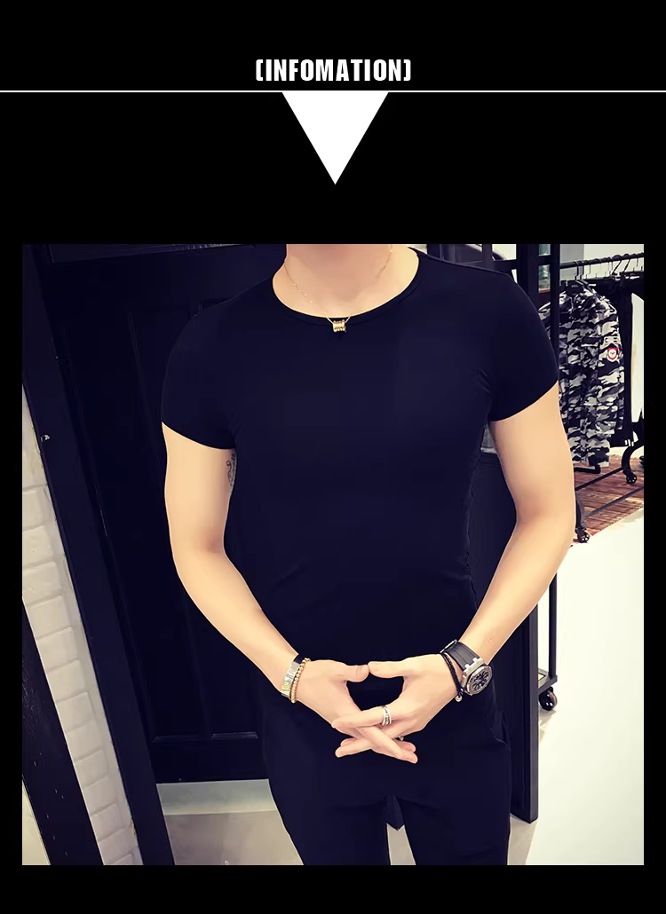 - Áo thun nam ngắn tay bó sát, kiểu dáng mùa hè mới, chất liệu cotton mỏng mát như băng, áo thun cao cấp ôm sát chất liệu lụa đá.