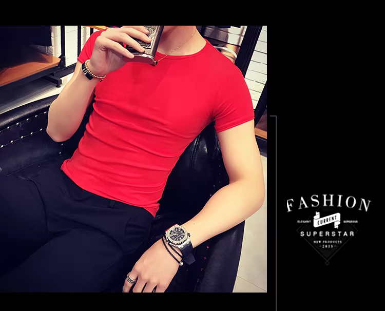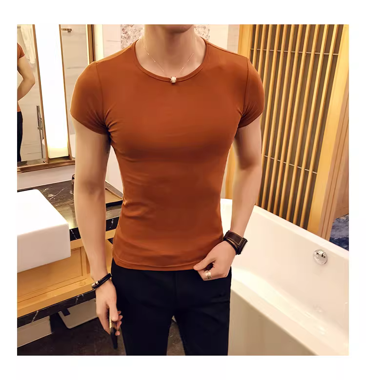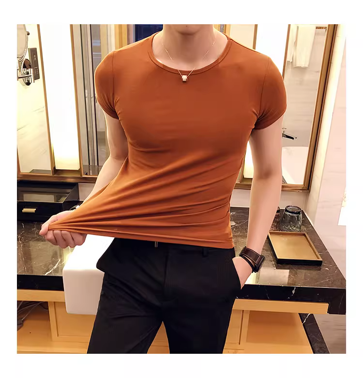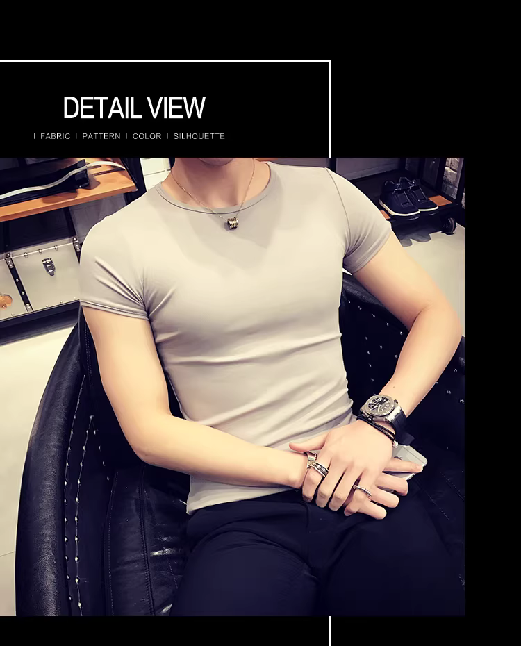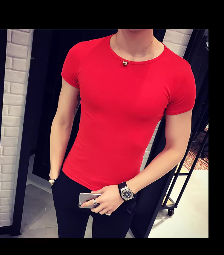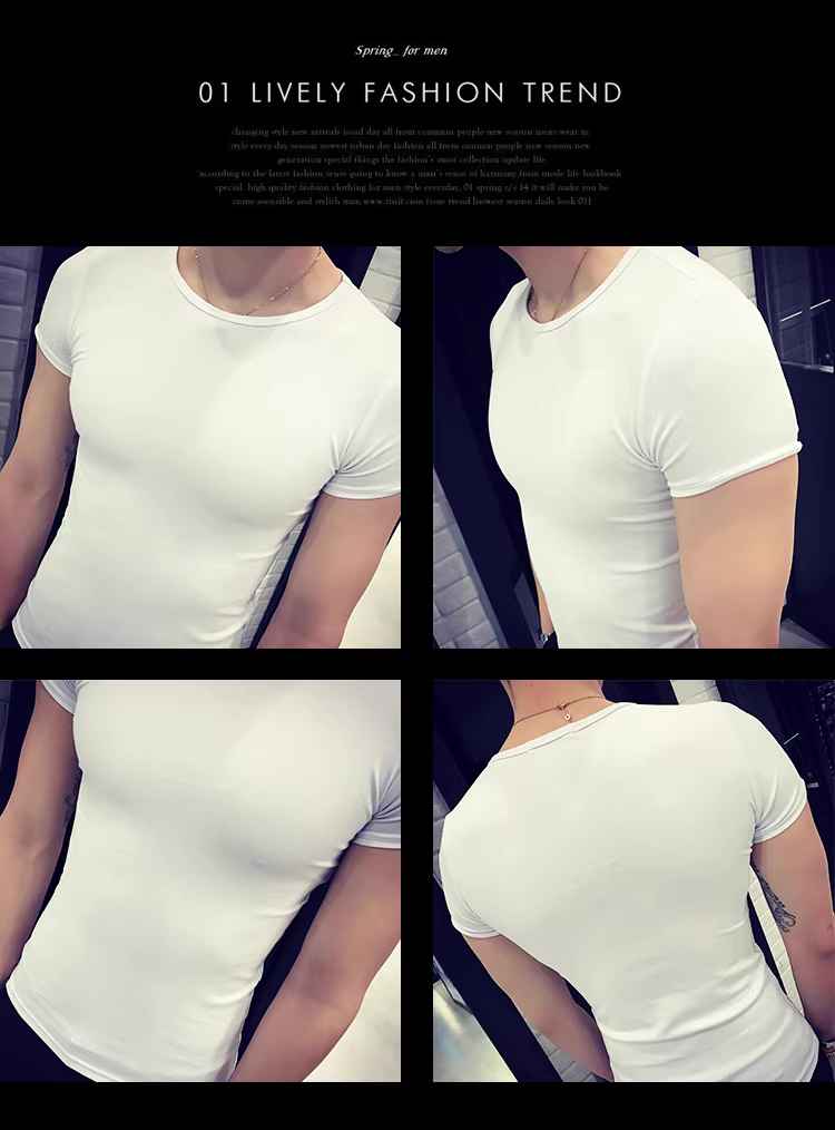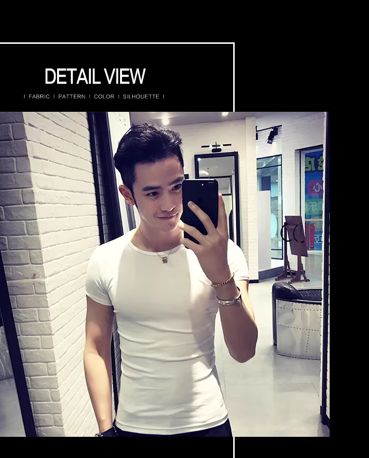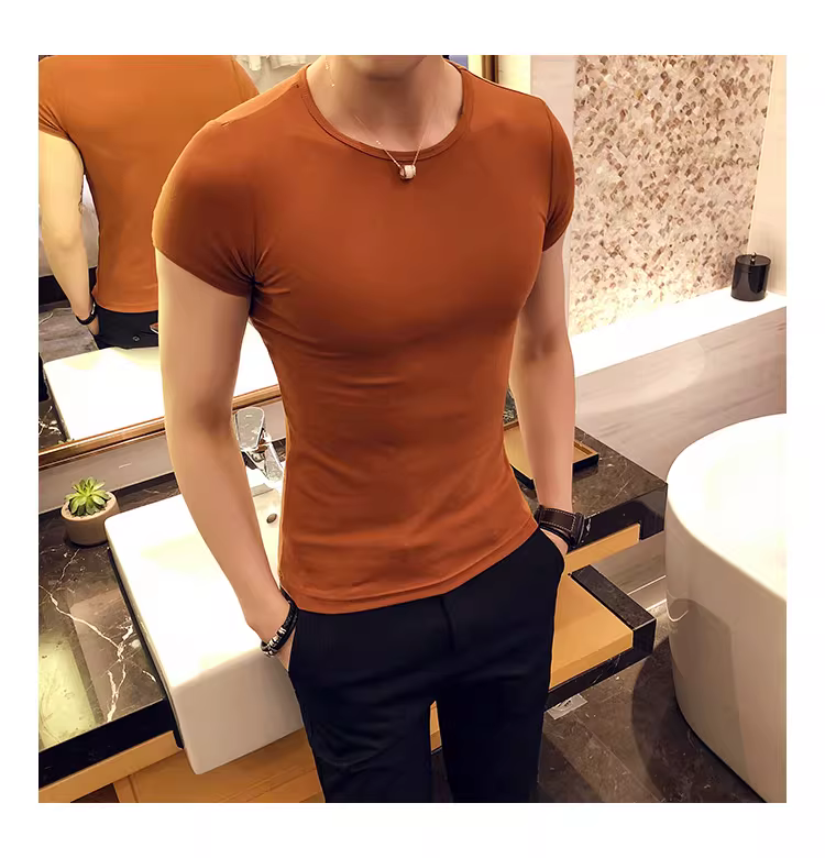 - Áo thun nam ngắn tay bó sát, kiểu dáng mùa hè mới, chất liệu cotton mỏng mát như băng, áo thun cao cấp ôm sát chất liệu lụa đá.