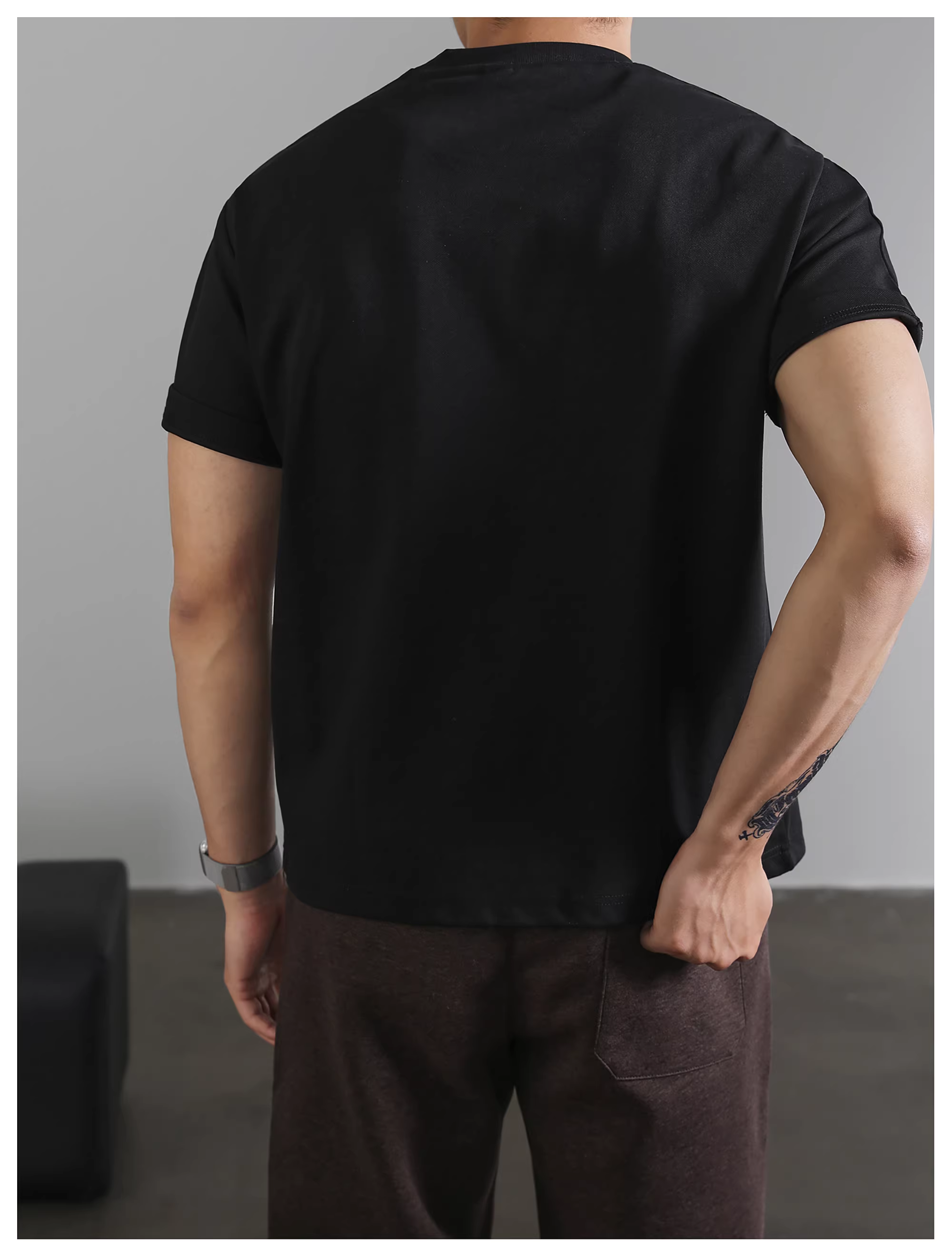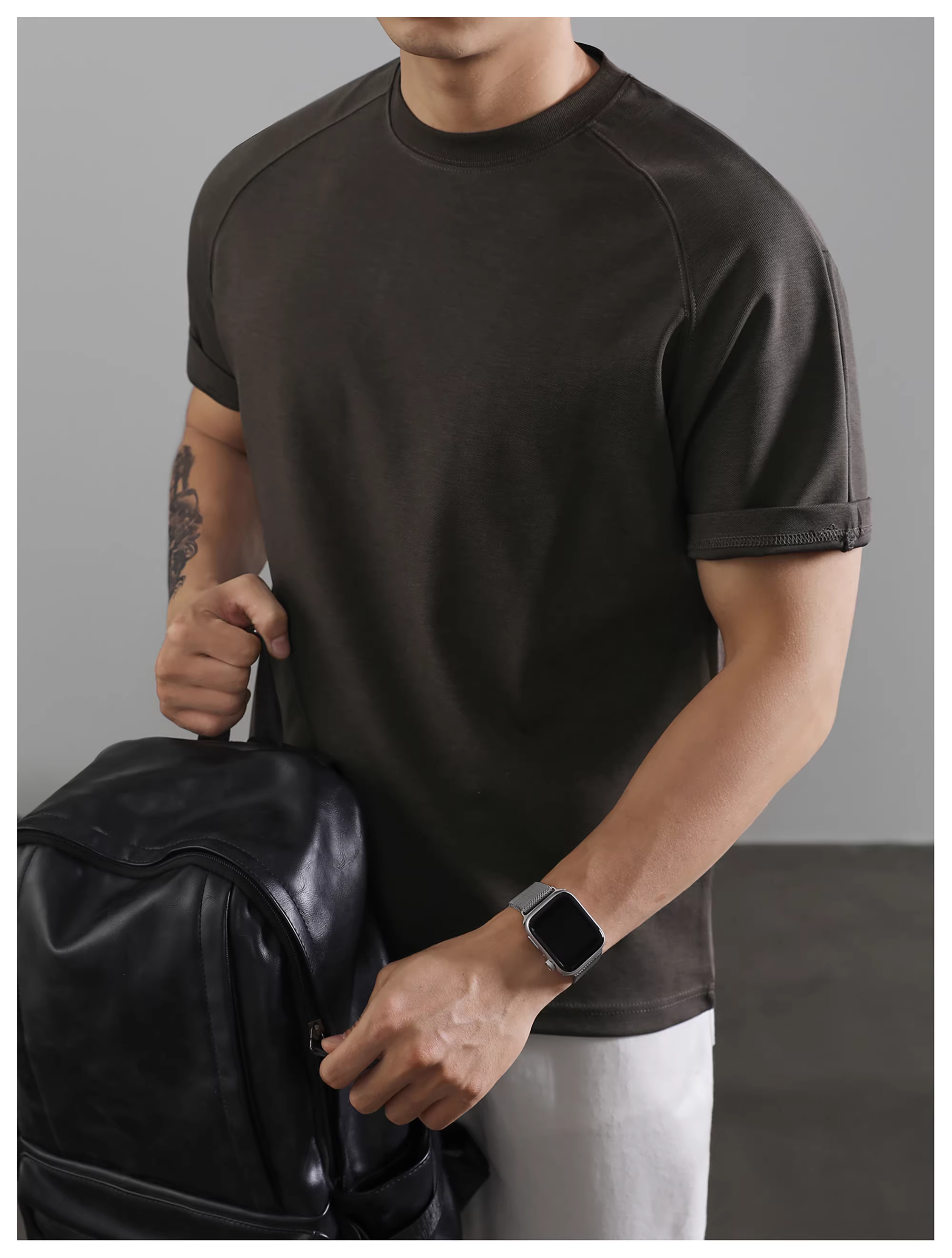 - Áo thun nam ngắn tay LUUD, áo sơ mi cơ bản kiểu Mỹ, áo thun cổ tròn màu đen phong cách thành thị giản dị