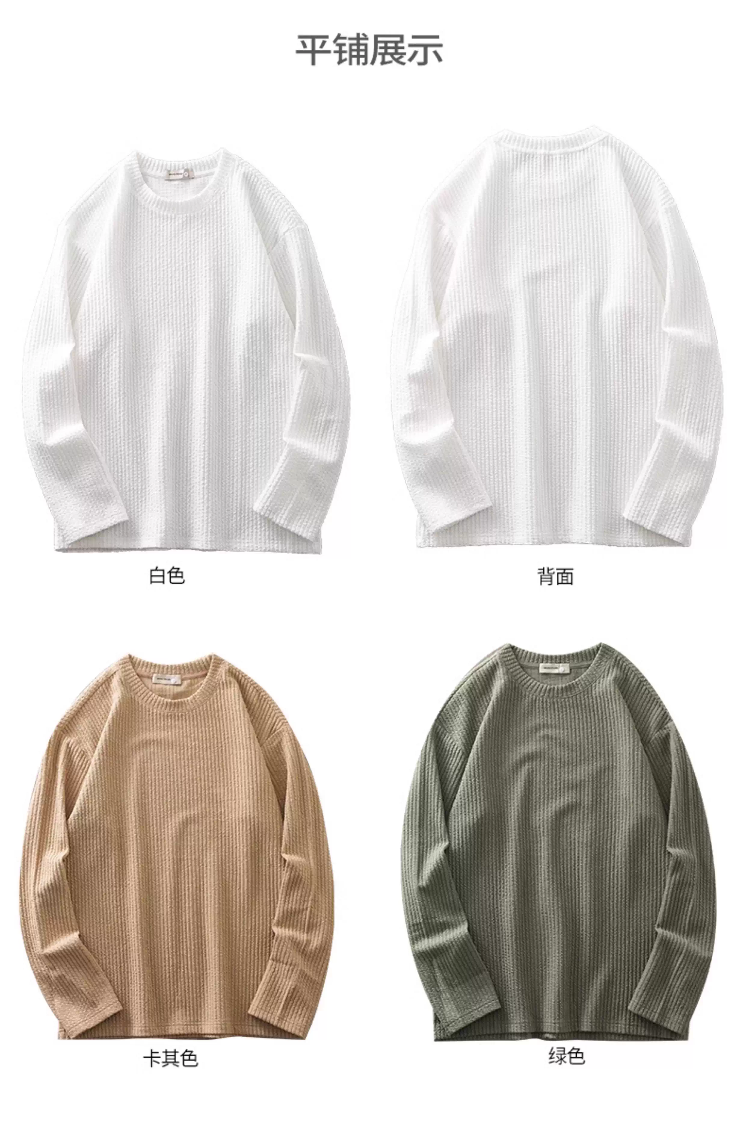 - Áo thun nam OMZM chất liệu dày dặn tay dài, áo sweatshirt cổ tròn rộng rãi mùa thu 2024, áo lót màu trắng tinh khiết.
