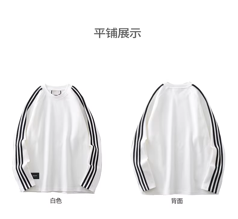 - Áo thun nam tay dài ba sọc, chất liệu dày dặn 300G, kiểu dáng Mỹ mùa thu 2024, phối màu sọc chải mềm mại, cổ tròn giữ ấm