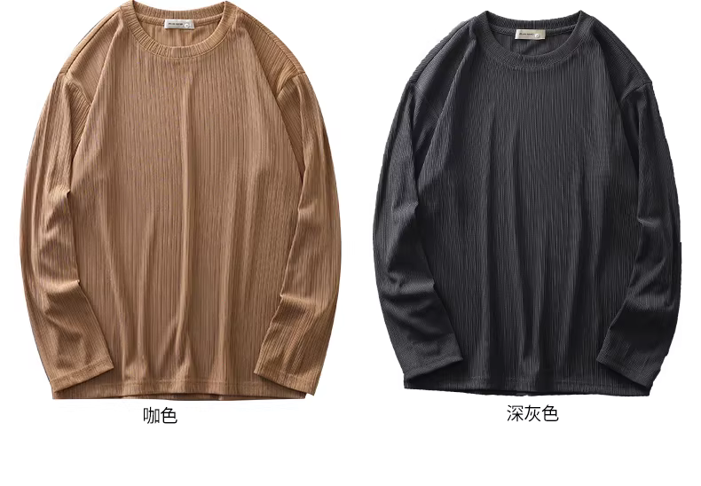 - Áo thun nam tay dài chất liệu dệt kim, áo sweatshirt cổ tròn rộng rãi cao cấp chống nhăn mùa thu, áo thun trơn màu đơn giản