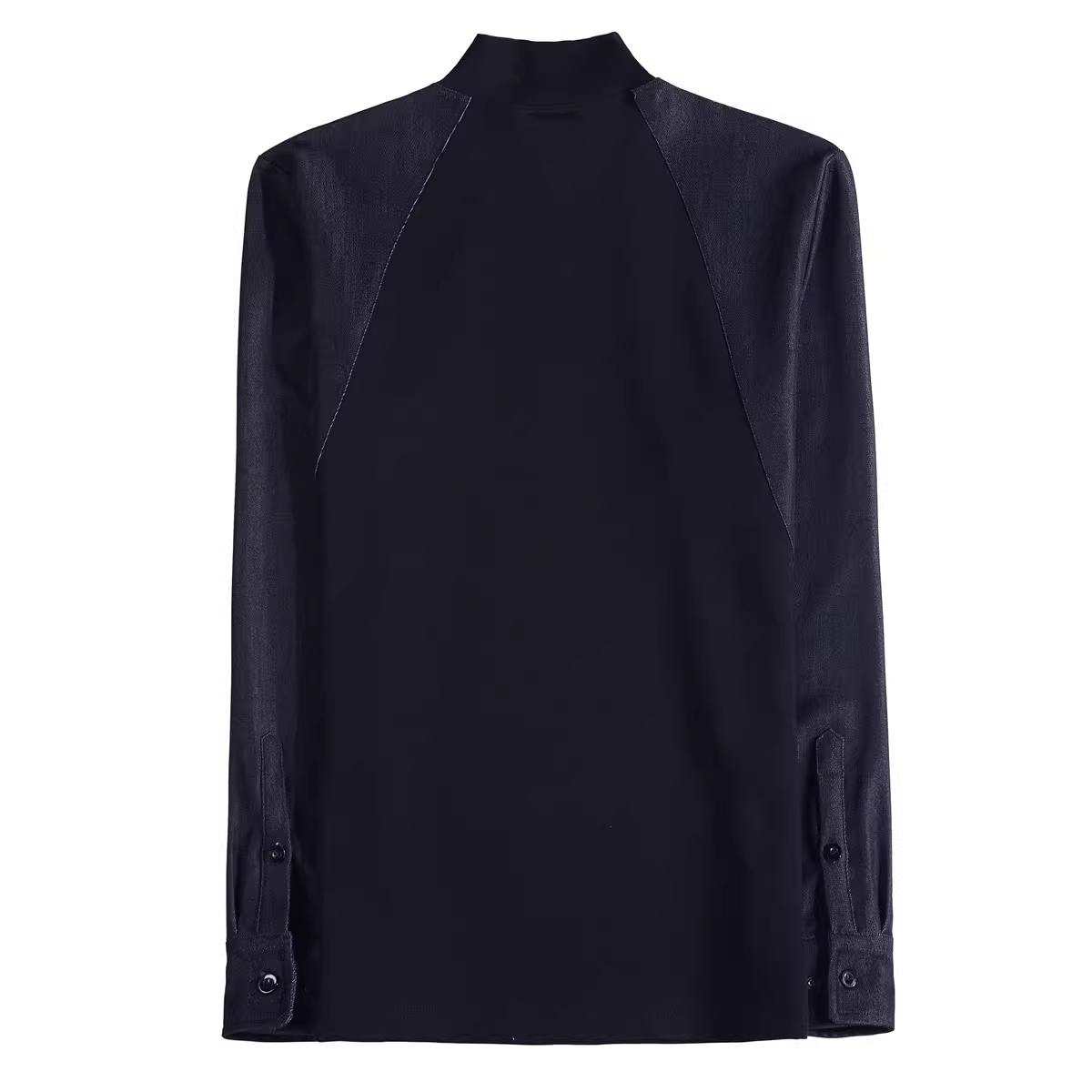 - Áo thun nam tay dài cổ nửa cao, thiết kế độc đáo với họa tiết phối dây đeo, kiểu dáng ôm body thời trang, mùa thu đông 2025.