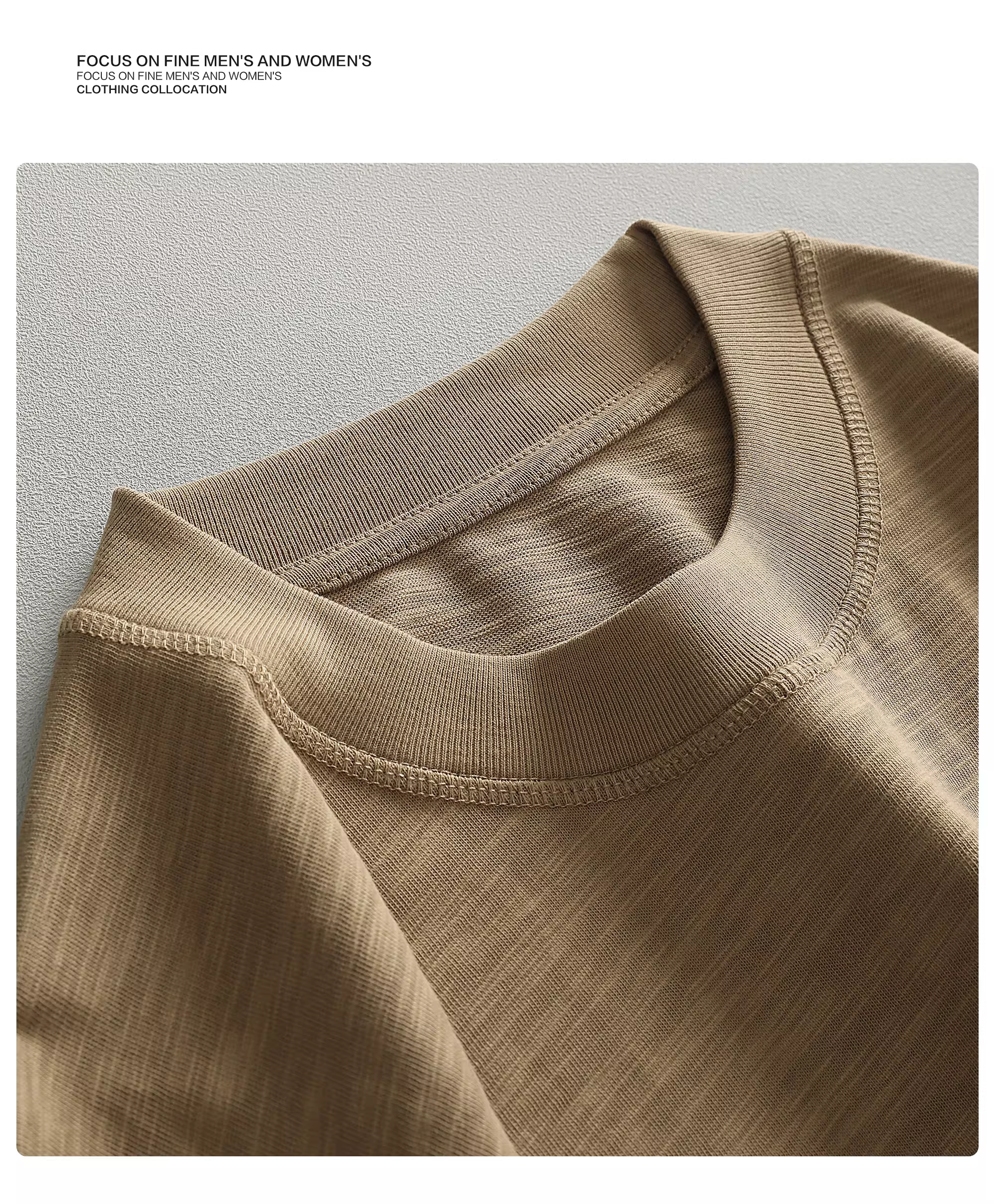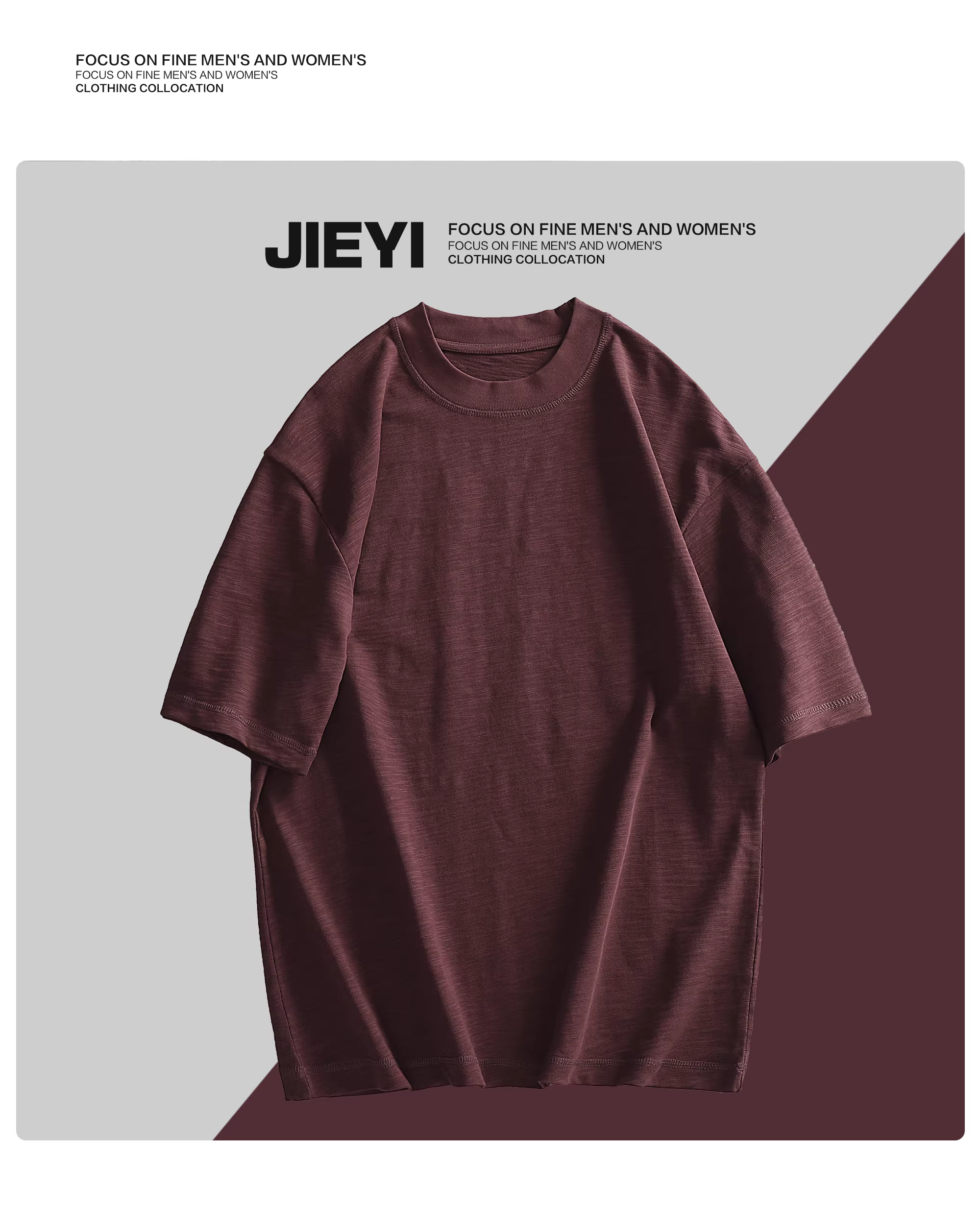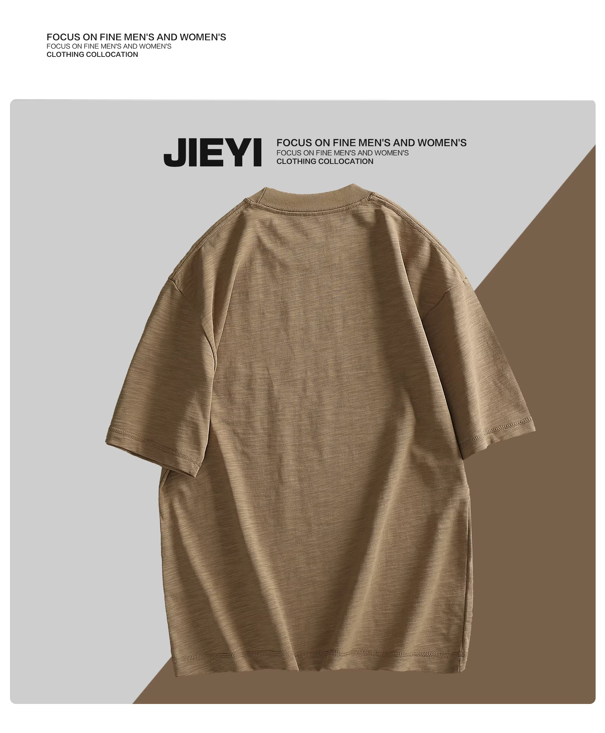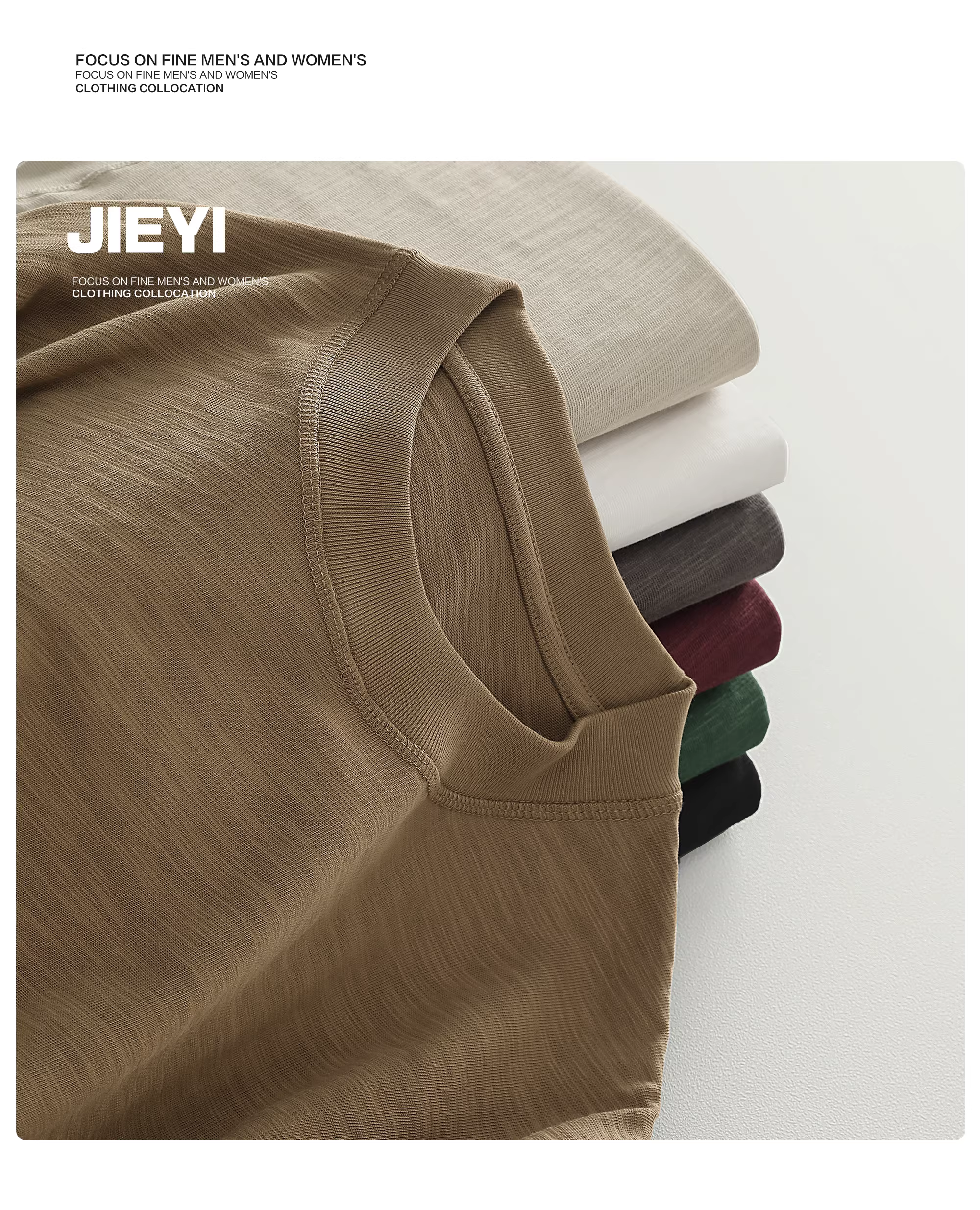 Áo thun nam tay ngắn chất liệu cotton bamboo sọc dọc 310G, màu trơn, đơn giản, phong cách thường ngày, dáng rộng, kiểu nửa tay