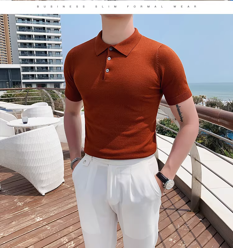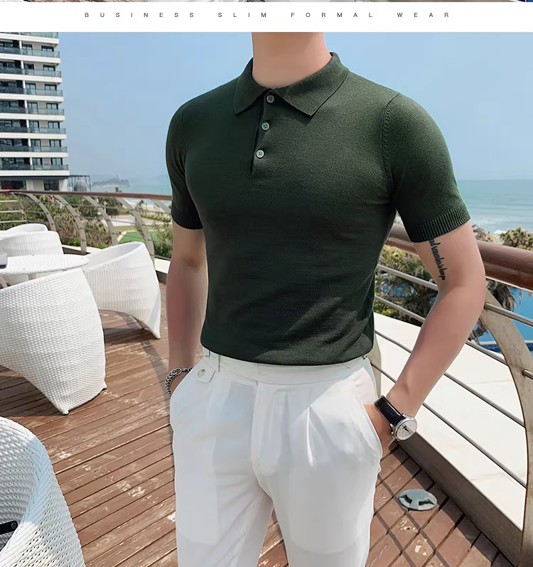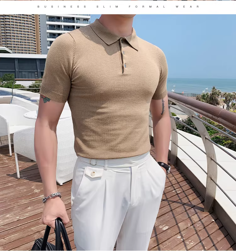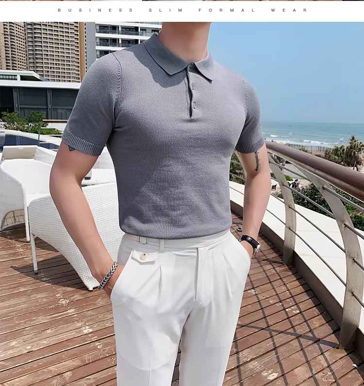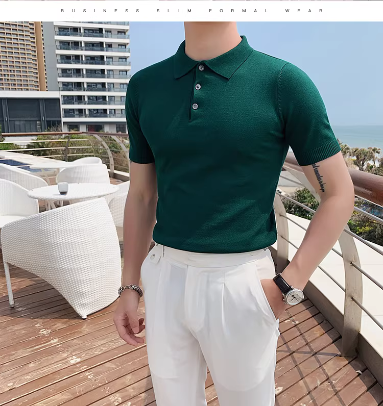 - Áo thun nam tay ngắn chất liệu lụa đá, kiểu dáng mỏng nhẹ mùa hè, phong cách Anh quốc, giản dị, thời trang, đa năng, ôm dáng, cao cấp.