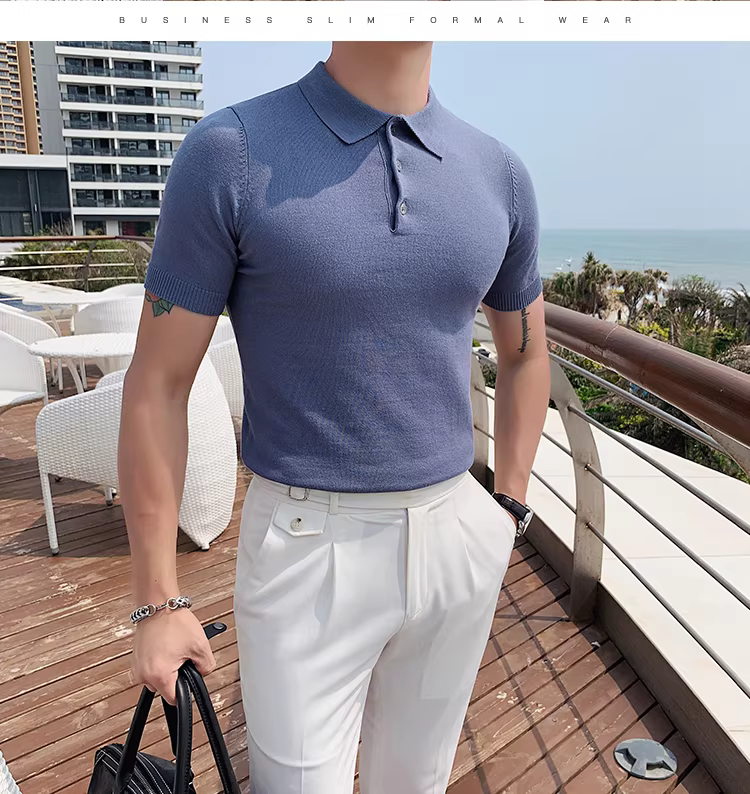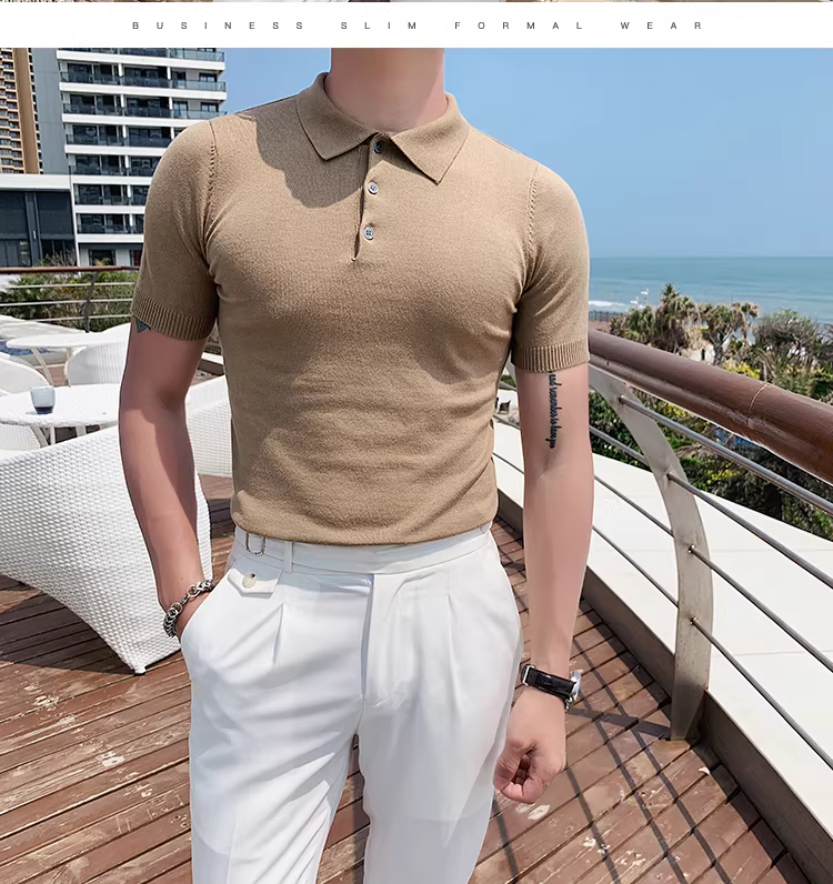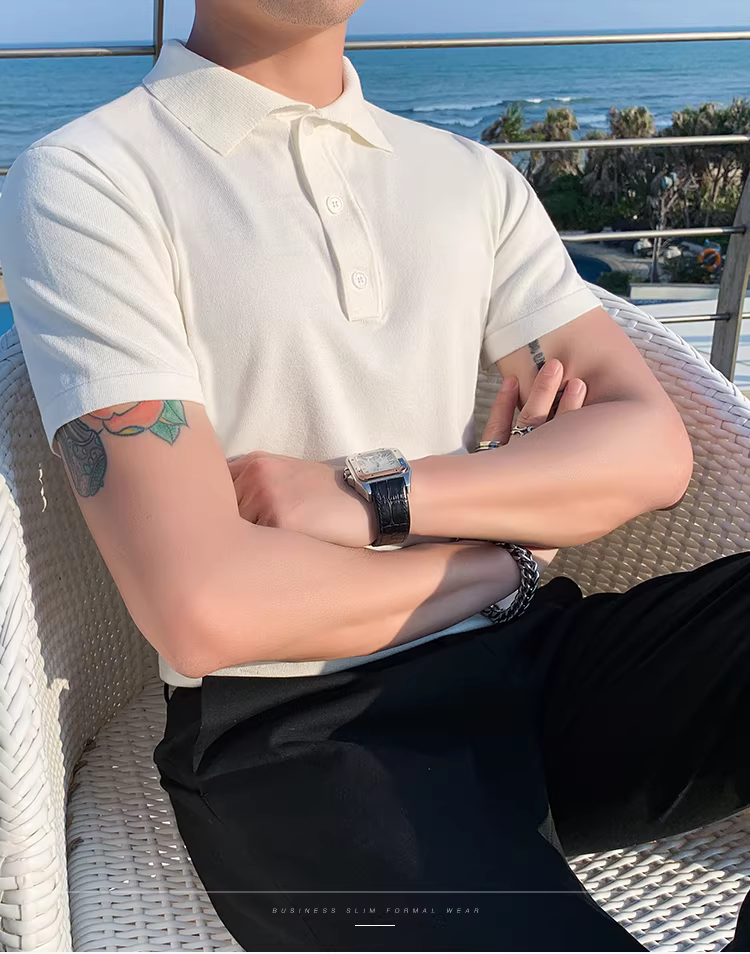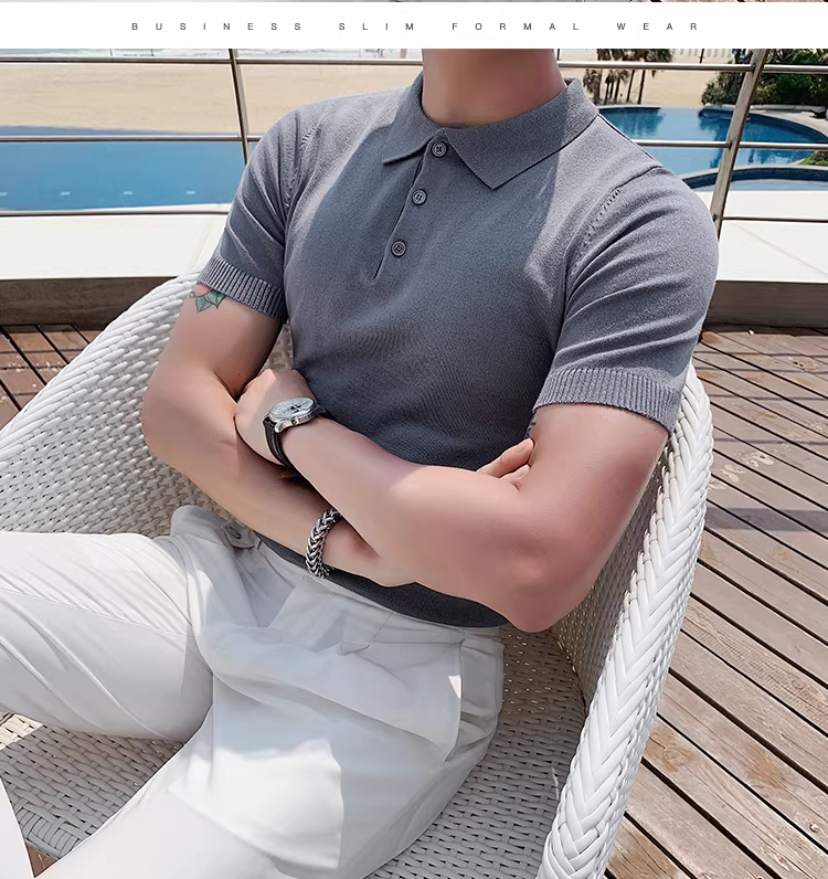 Áo thun nam tay ngắn chất liệu lụa đá, kiểu dáng mỏng nhẹ mùa hè, phong cách Anh quốc, giản dị, thời trang, đa năng, ôm dáng, cao cấp.
