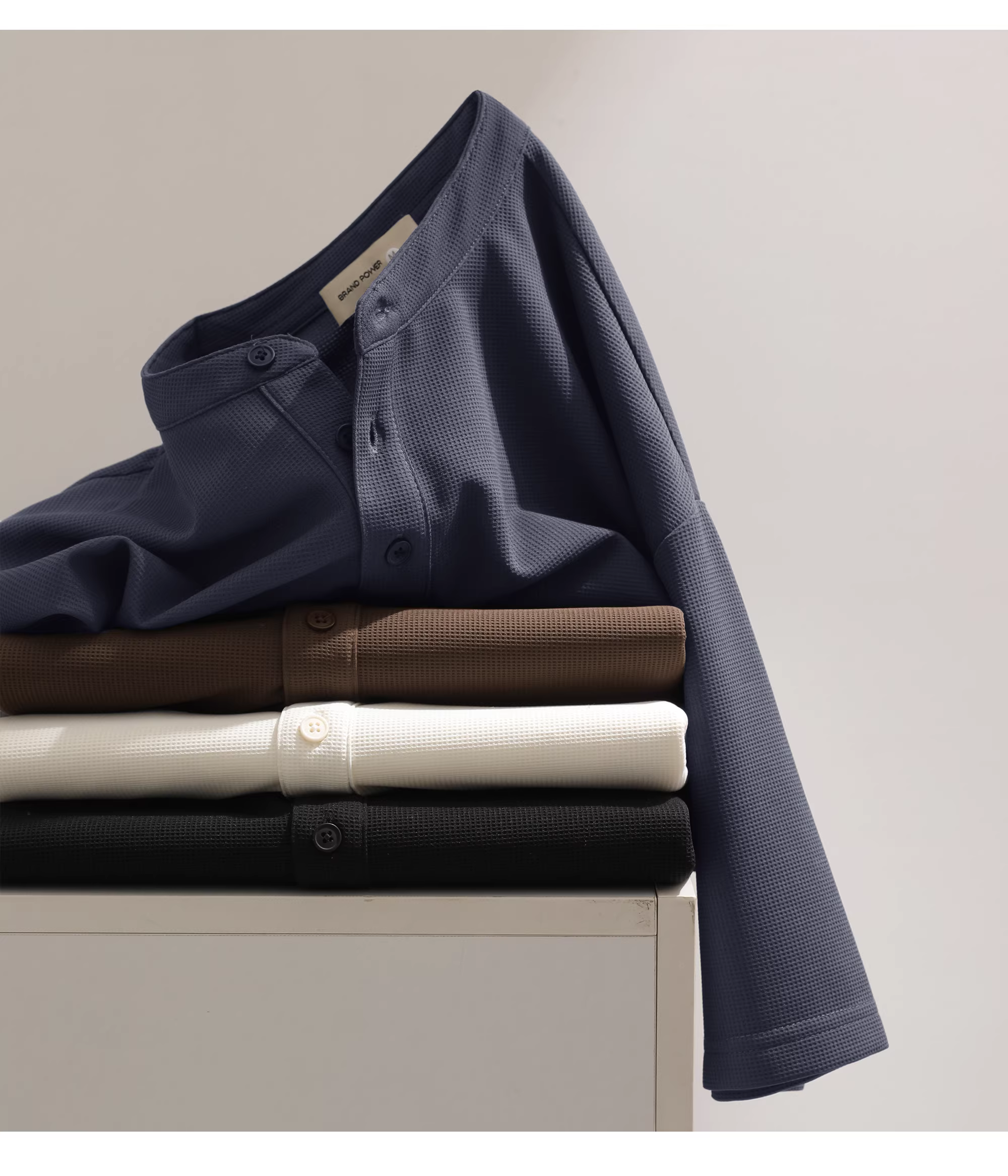 - Áo thun nam tay ngắn chất liệu waffle trơn màu cổ Henry phong cách cổ điển trưởng thành trẻ trung JIEYI