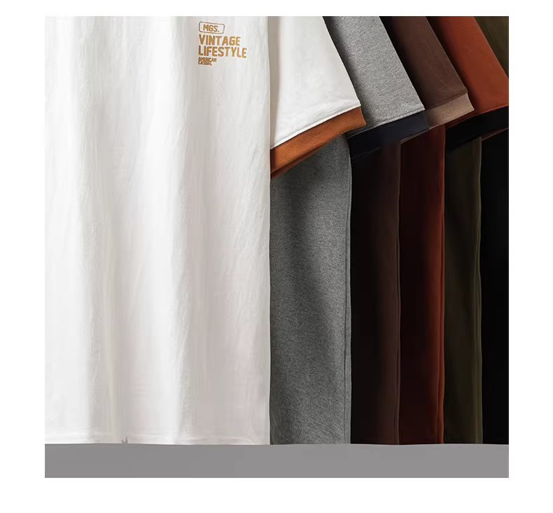 - Áo thun nam tay ngắn phối màu phong cách Mỹ in hình gấu Bắc Cực, chất liệu cotton 100%, dáng rộng, cổ tròn, kiểu patchwork nặng 320G, mùa hè
