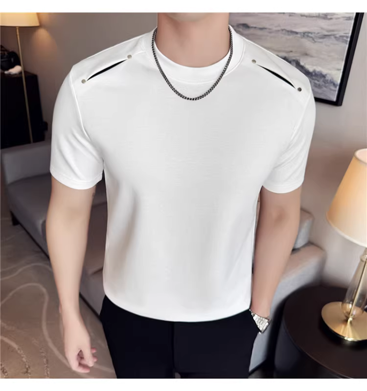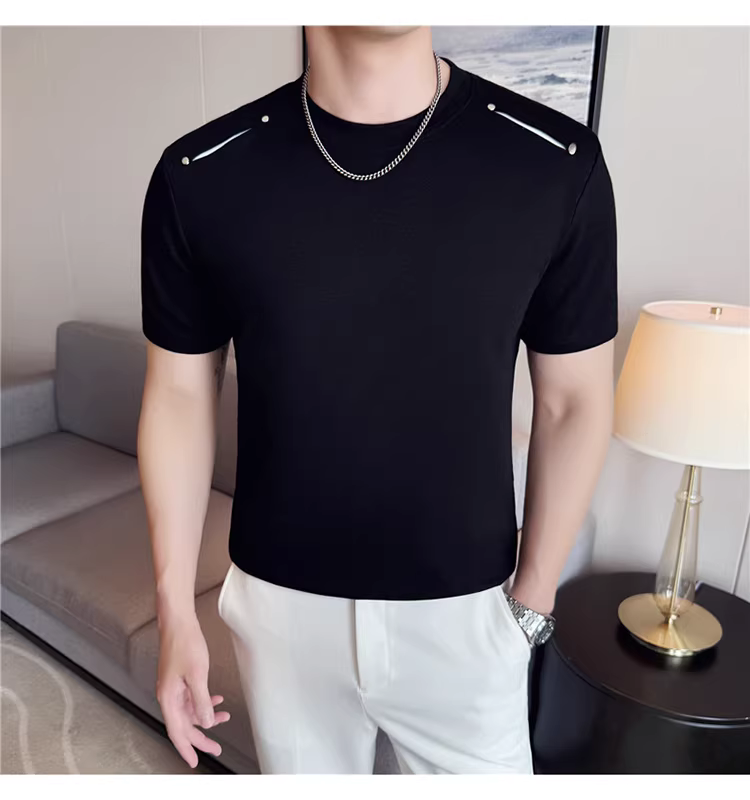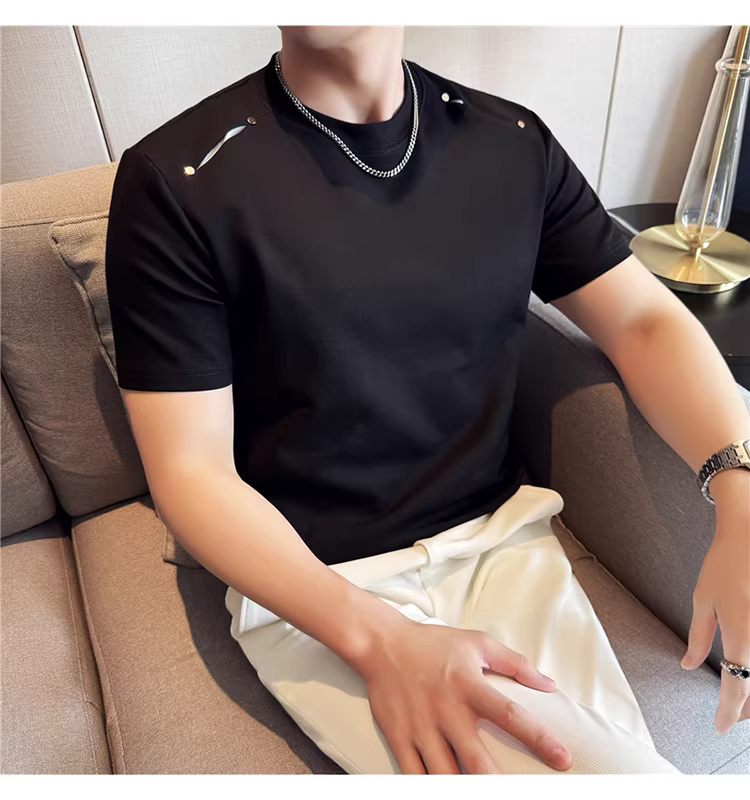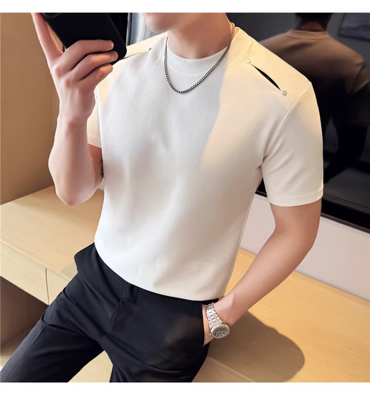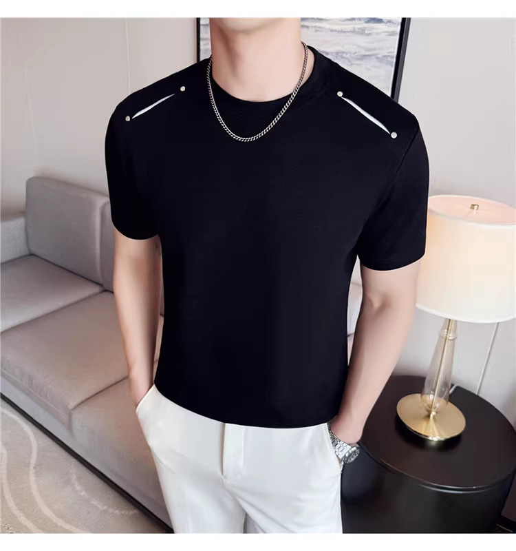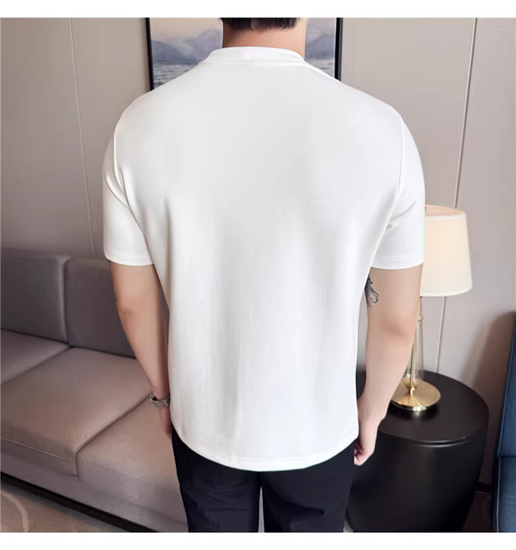 - Áo thun nam tay ngắn phối vải ở vai, kiểu mới hè 2025, thoải mái, đa năng và thời trang