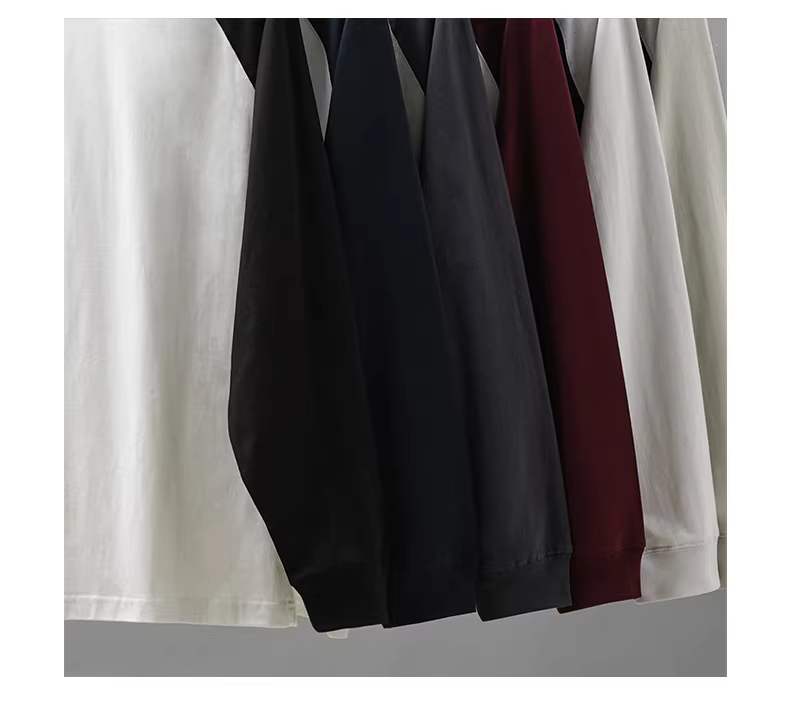 - Áo thun nam tay raglan dài, chất liệu cotton dày 230G, kiểu phối màu, cổ tròn, mùa thu 2024.
